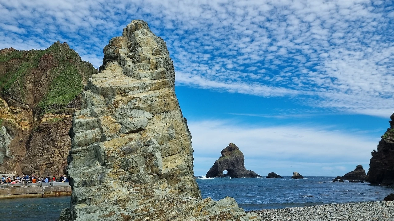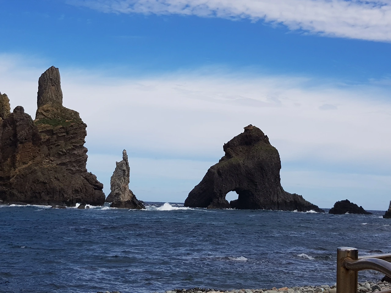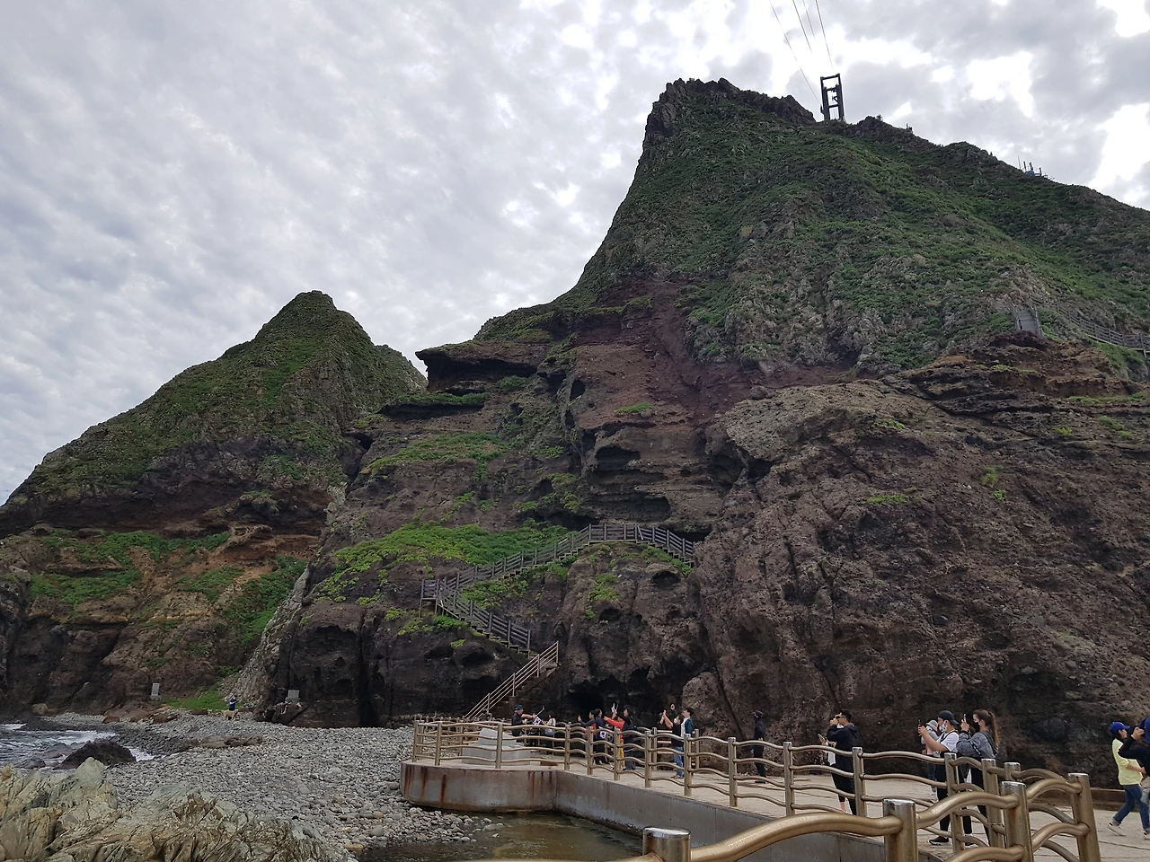 바닥은 시멘트로 포장이 되어 있었고 그 푸른 바다와 어우러진 주변의 작은 바위섬들이 자태를 뽐내며 어서 오라 날 반기고 있었다