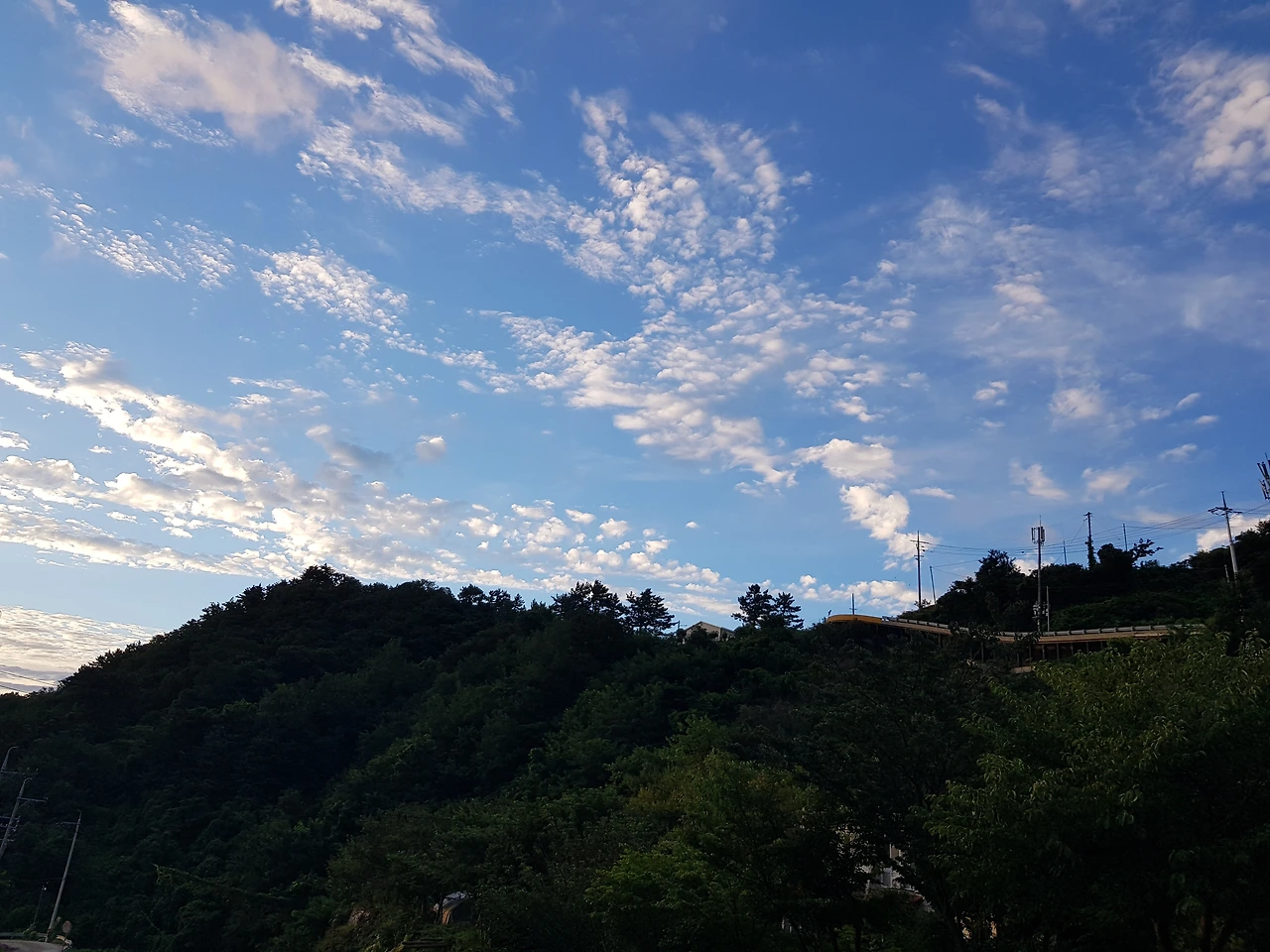 어제의 하늘은 사라지고 푸르고 맑은 하늘에