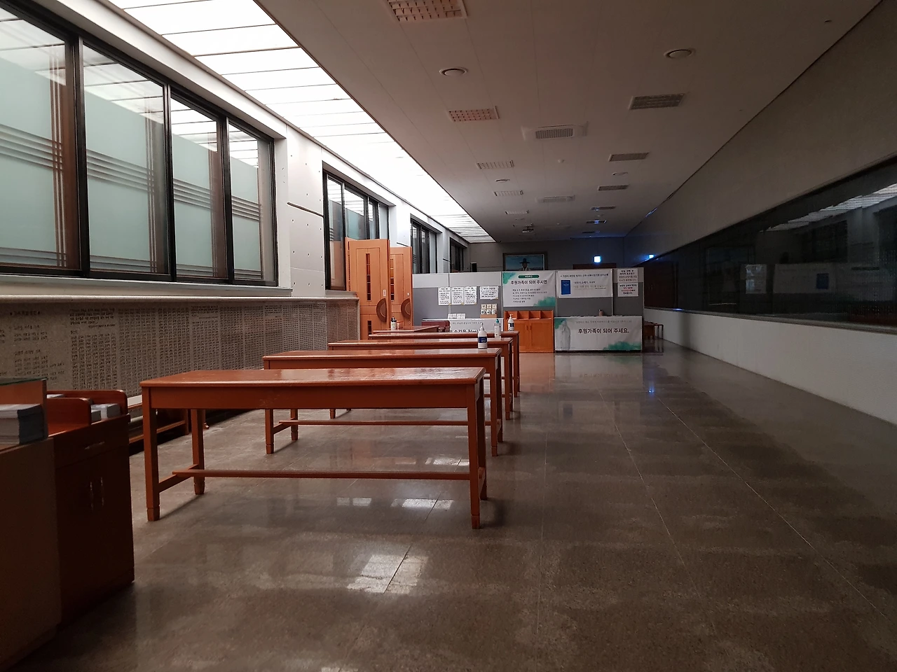 불을 켜지 않았으나 빛이 들어와 내부는 밝았으며 굉장히 넓은 내부였고 웅장함도 느껴졌다