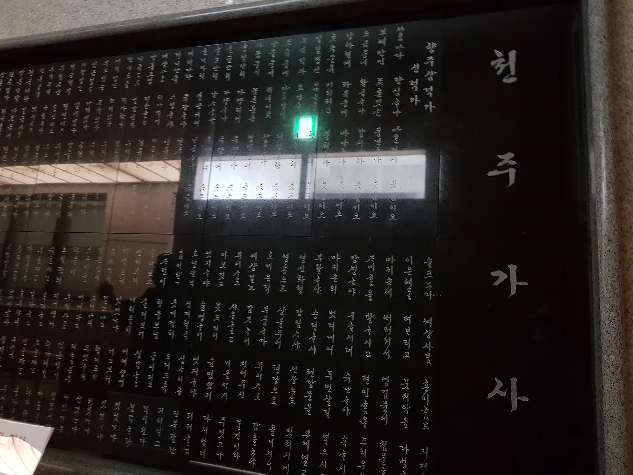 바로 입구에서 액자에 담긴 신부님의 모습을 뵙고 옆으로 길게 전시된 천주가사를