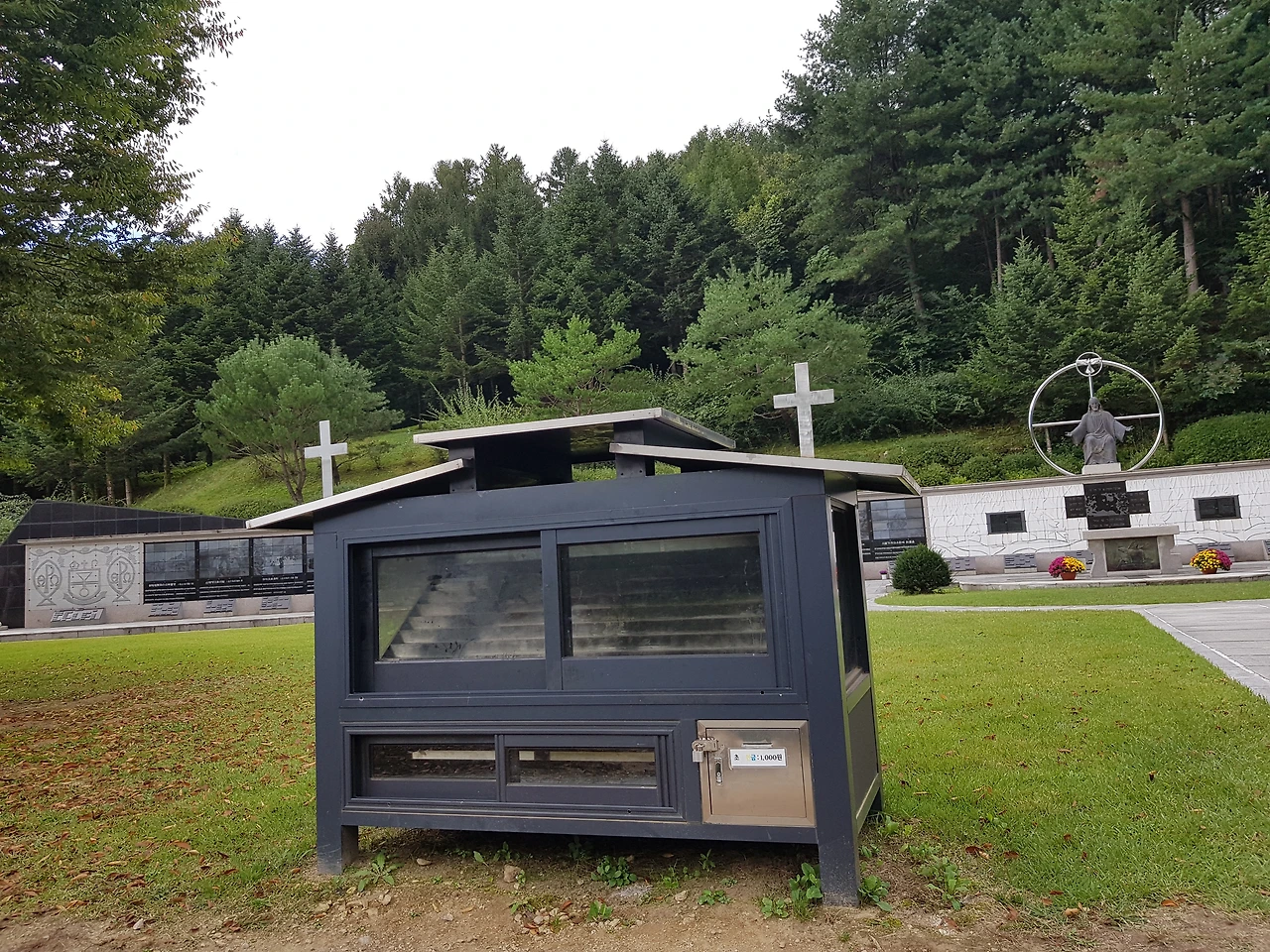 들어가 살펴보니 이곳은 조각공원이 아니라 성도들의 유골함을 안치해 두는 묘역이었다