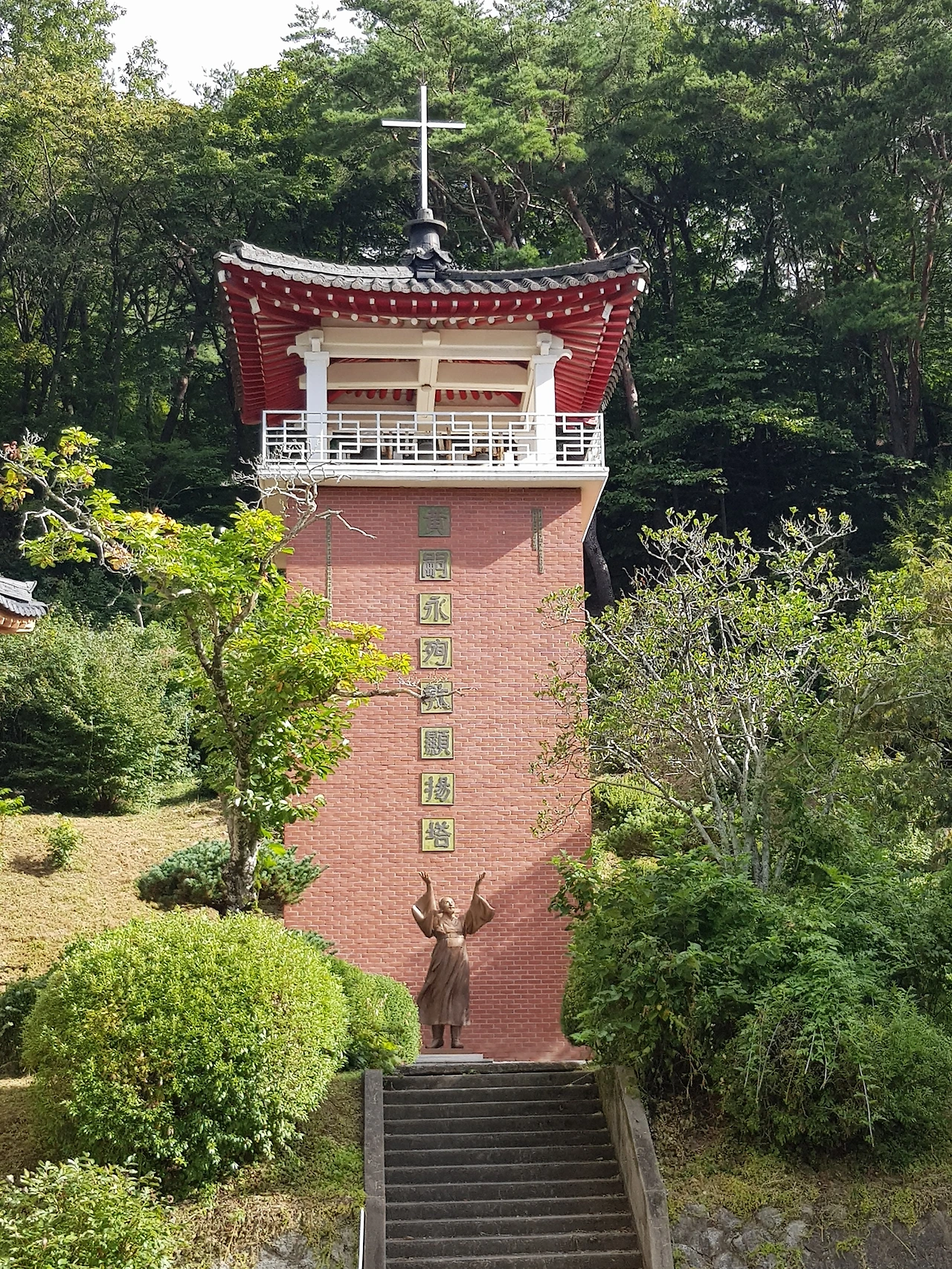 진복문이란 표지의 건물 앞에는 공사 중을 알리고 옆으로 붉은 벽돌로 쌓고 그 위에 누각이 있는 아주 높은 탑이 있어 보니 ㅡ순교자 황사영 알렉시오 헌 양탑ㅡ이었다