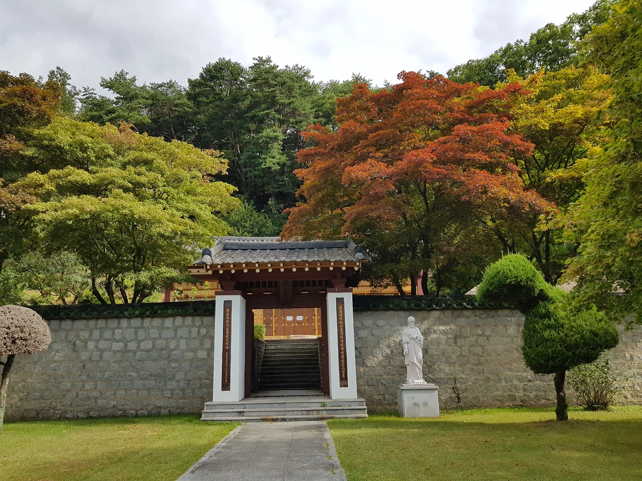 탑 앞에 동상의 의복이 관복인 것을 보니 그의 직업이 평민이 아니었음을 알리는 듯했다