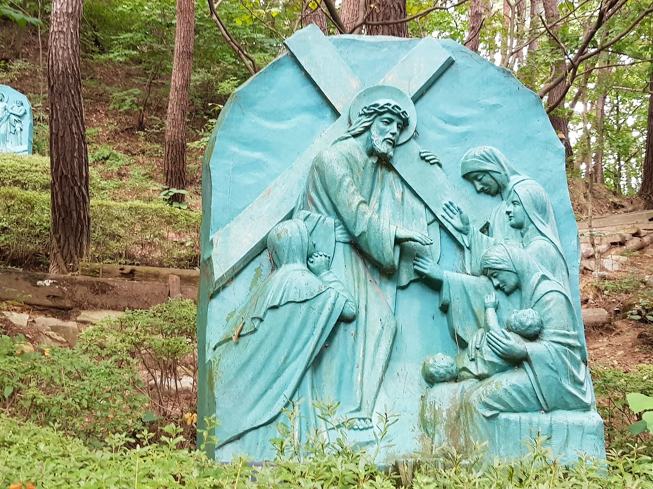 내려오니 숲에 예수 부활의 조각상이 있었으며 아마도 십자가의 고난의 길도 끝나가는 듯했다