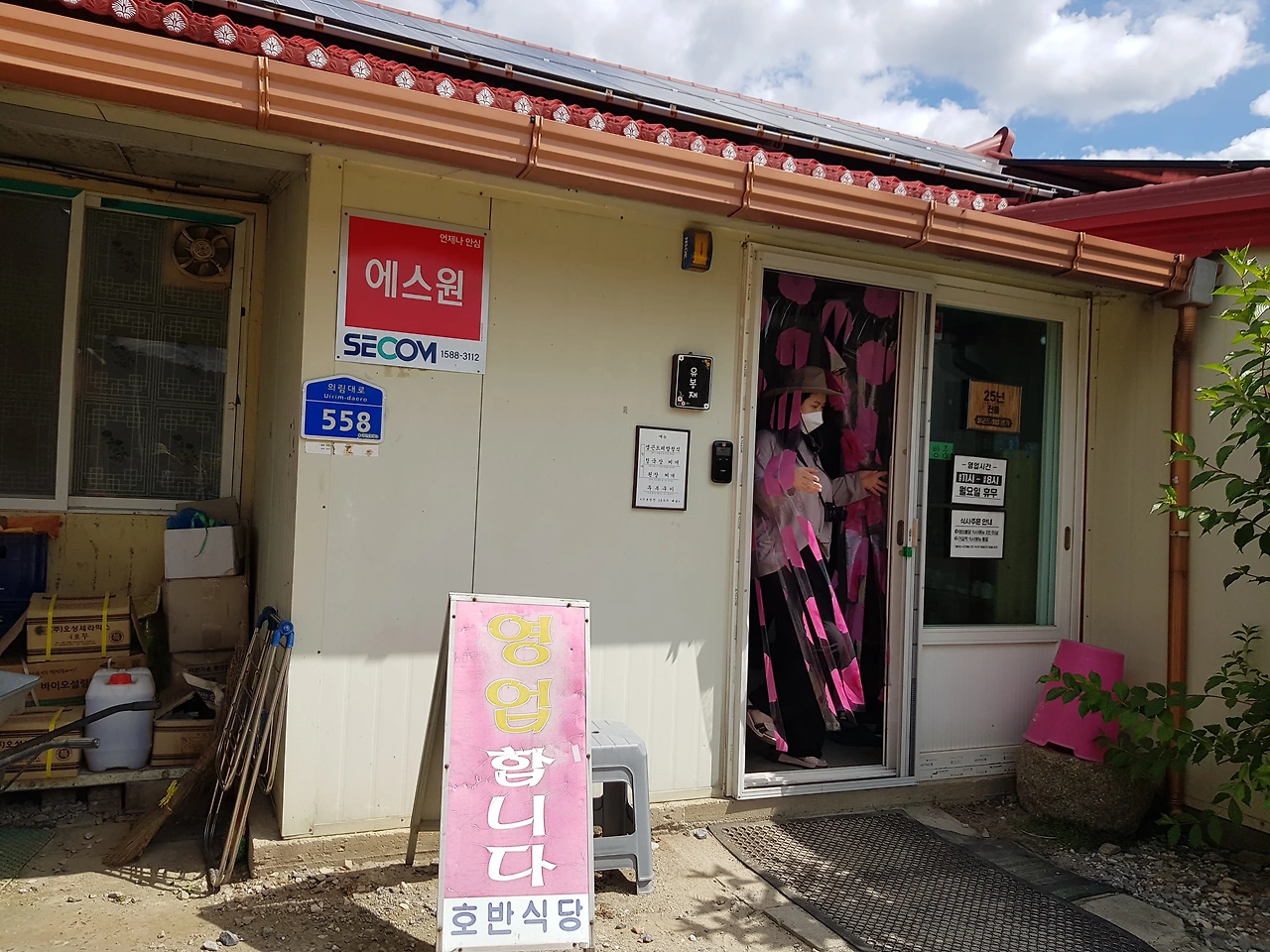일하는 인부들의 모습에 좀 미안함을 느끼며 들어가니 아주 넓은 주차장과 그 앞 카페 음식점 등 동네 쪽으로 고향집 같은 음식점 한 곳과 새롭게 지어진 건물들이 주차장에 진입하는 차들을 향해 얼굴을 알리고 있었다