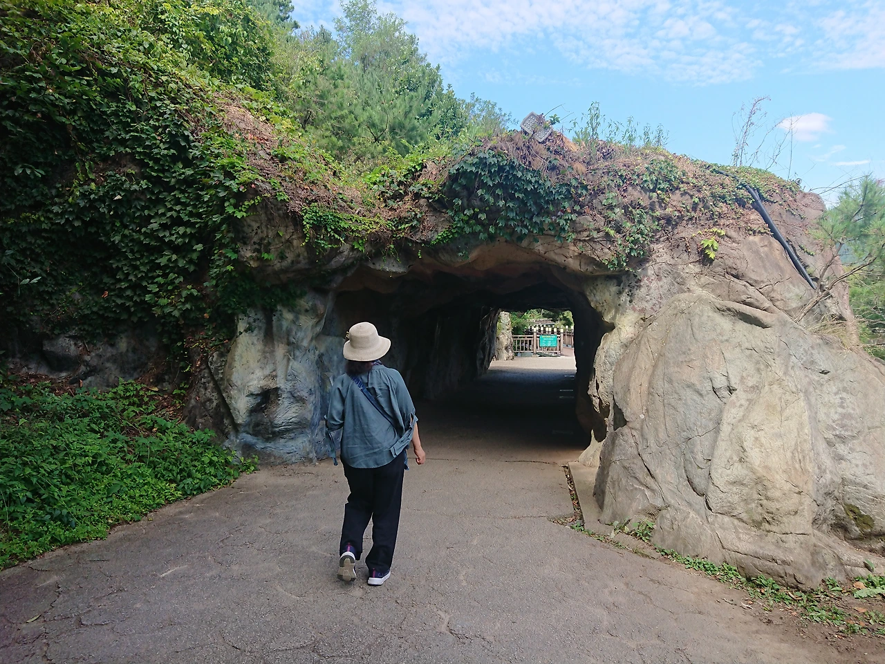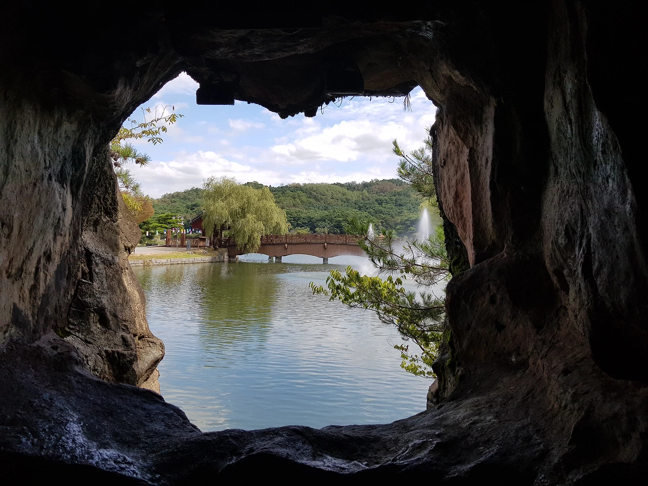폭포를 지나 안으로 들어가니 인위적으로 만들어 놓은 동굴이 있고 그 안쪽에는 호수 쪽으로 형이상학적으로 구멍을 내어 호수를 바라보게 하였는데 이 또한 운치가 있었다