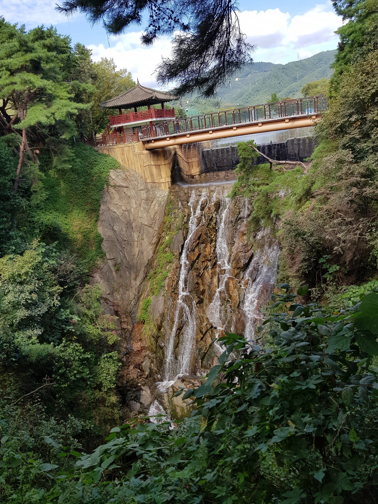 의림지에 정자도 있고 용추폭포도 있고 폭포 앞에 투명 다리도 있어 후들 대는 다리를 진정시키며 다리 밑에 쏟아져내리는 폭포의 물줄기를 감상하며 건너기도 했다
