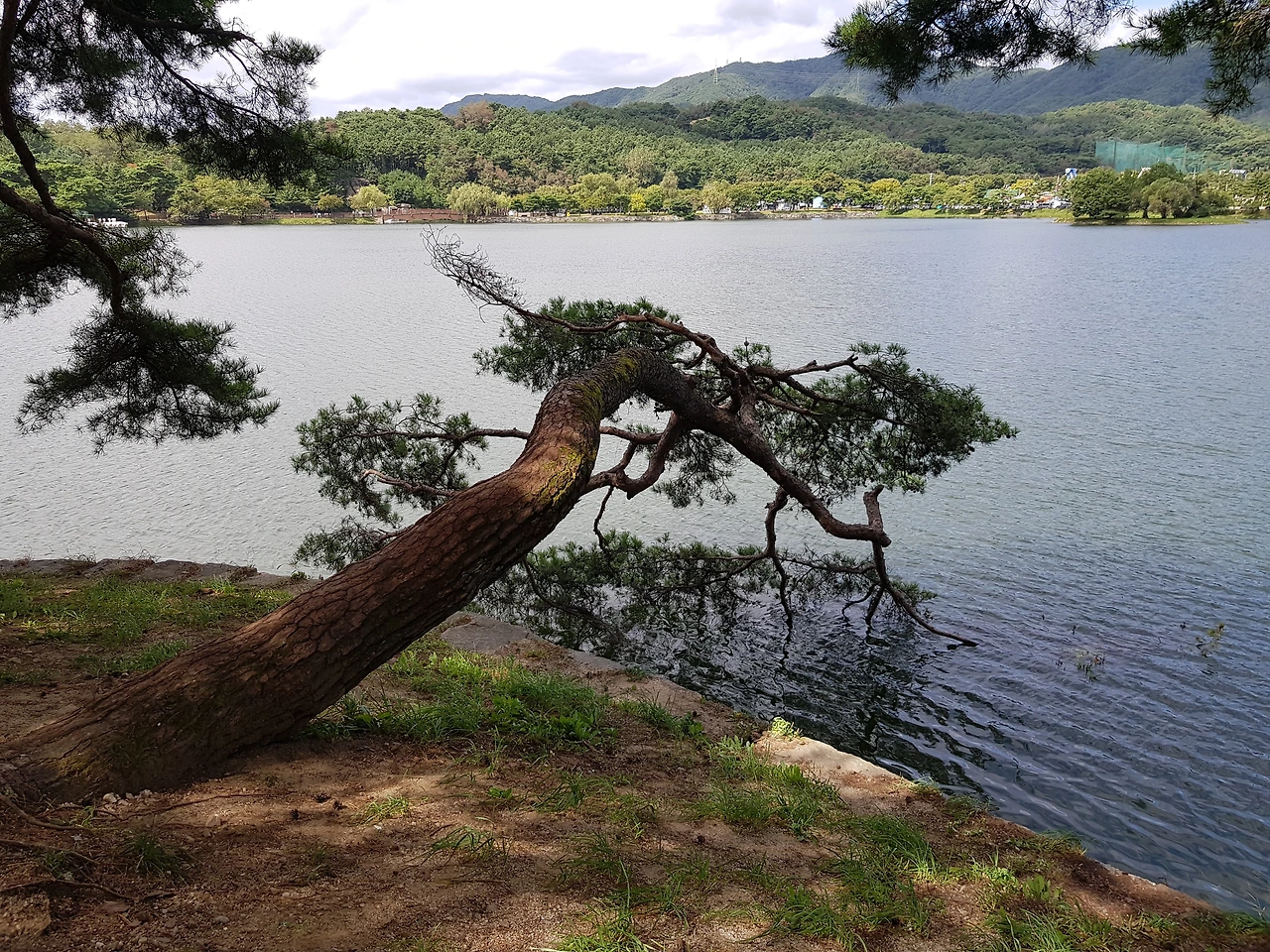 소나무가 물가에서 자라는 것도 모자라 바로 서지도 않고 저리 누워 자란 것도 너무 신기한데 거기에 잎을 물속에 담그고도 푸르다니ㅡㅡㅡㅡ이해가 가지 않았다