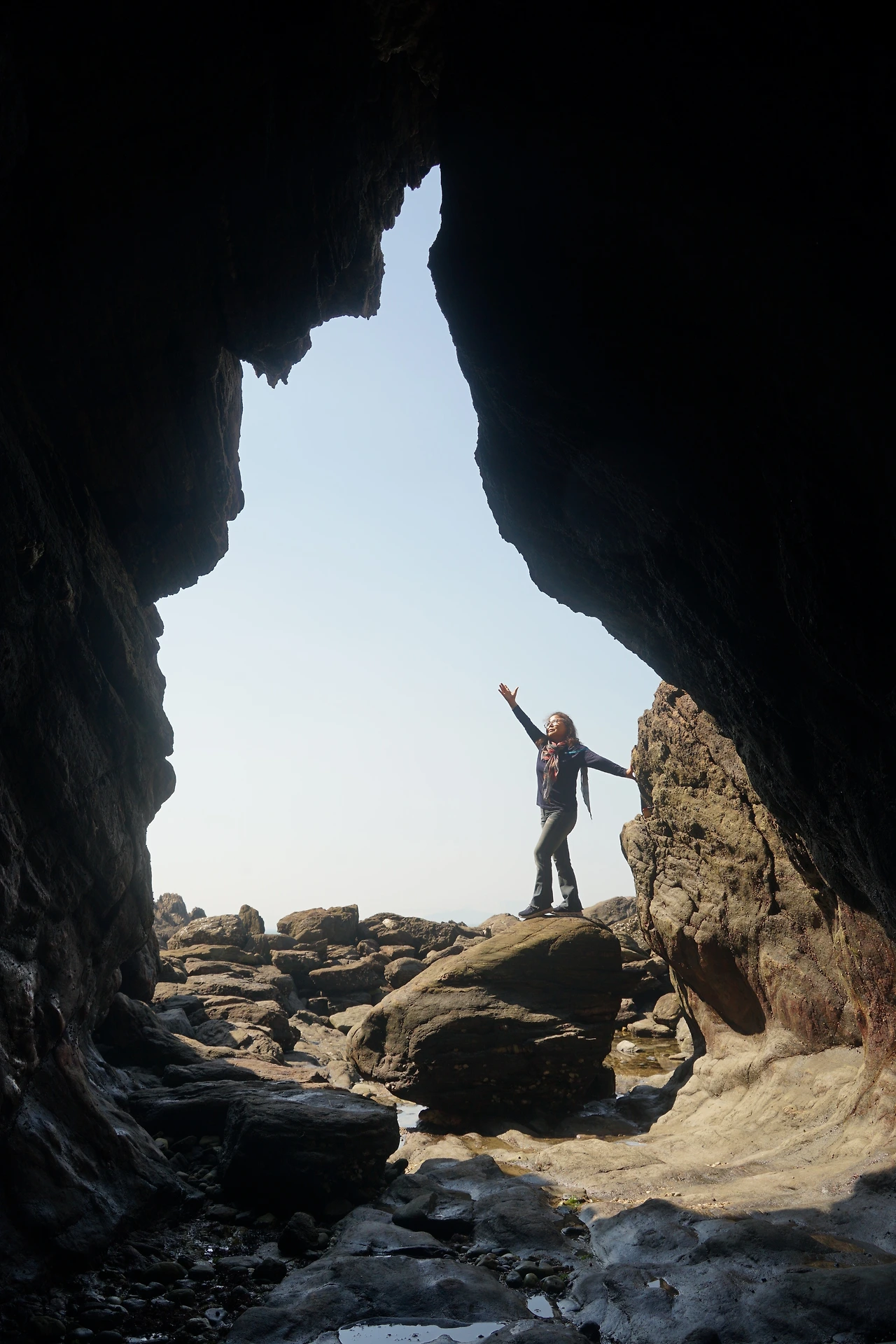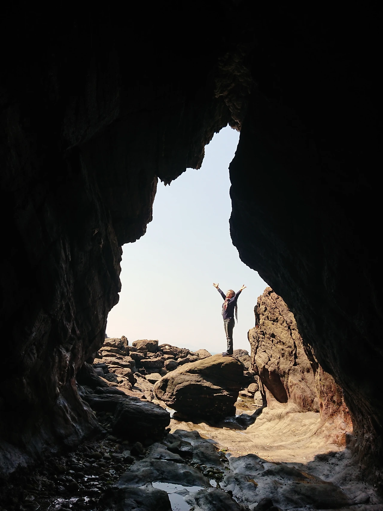 입구에서 멋진 인증샷을 찍고는 다시 반짝이는 돌들을 따라 동굴을 떠나 바다를 나왔다