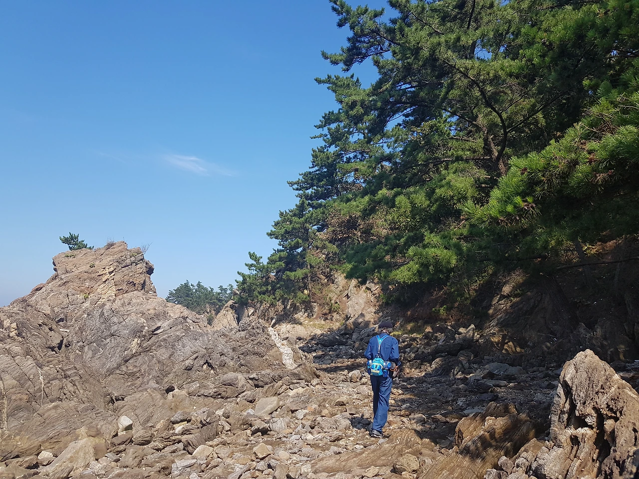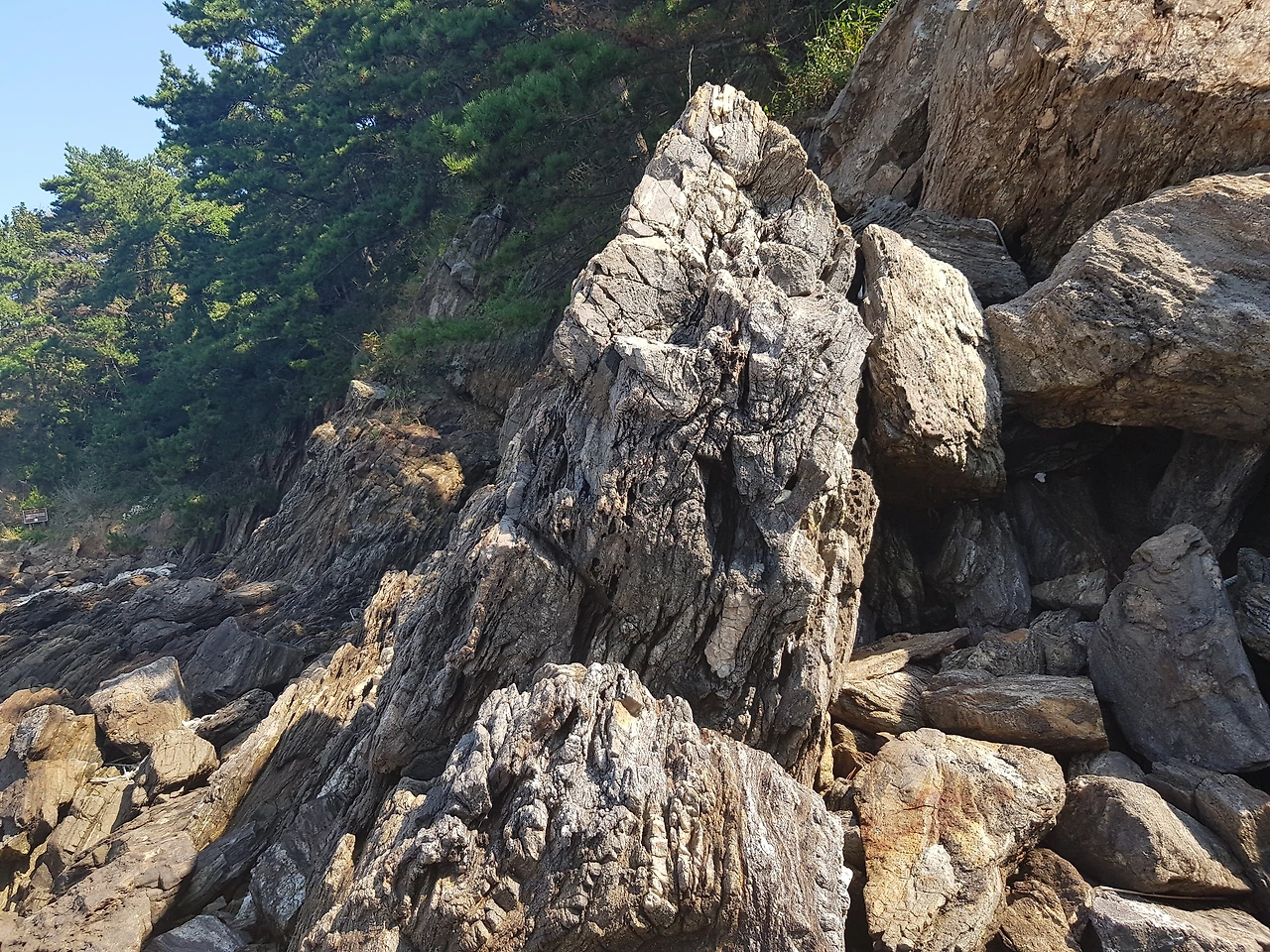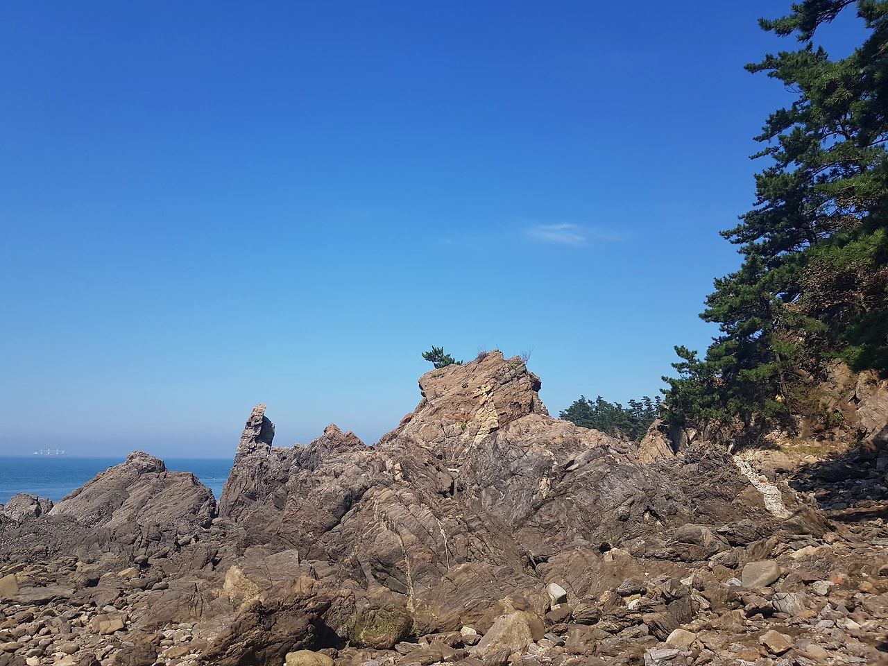 썰물로 물이 많이 빠져 넓은 바닷길을 걸을 수 있었는데 이곳의 돌들이 예사롭지가 않았다