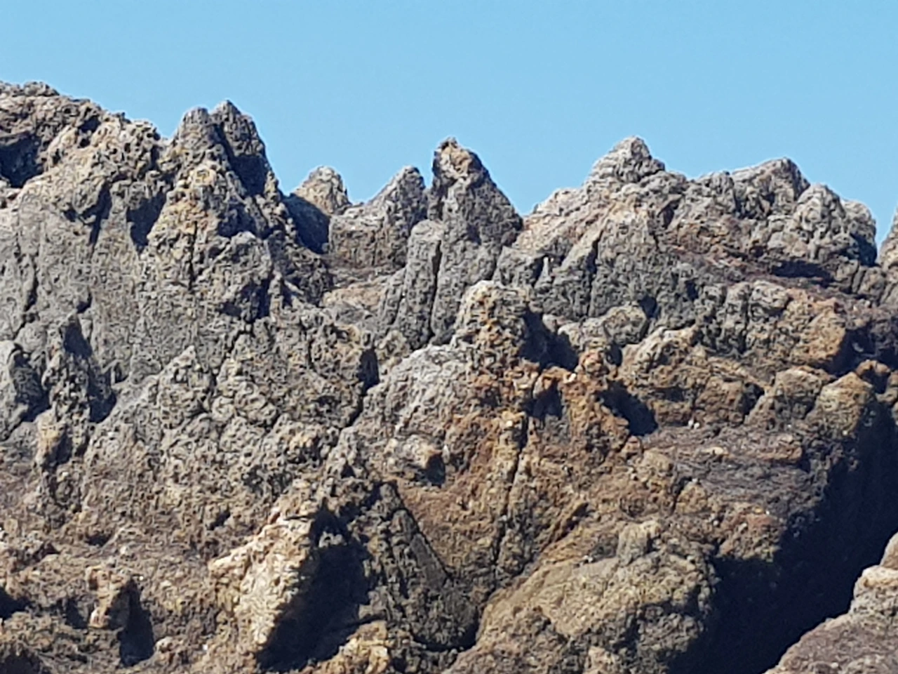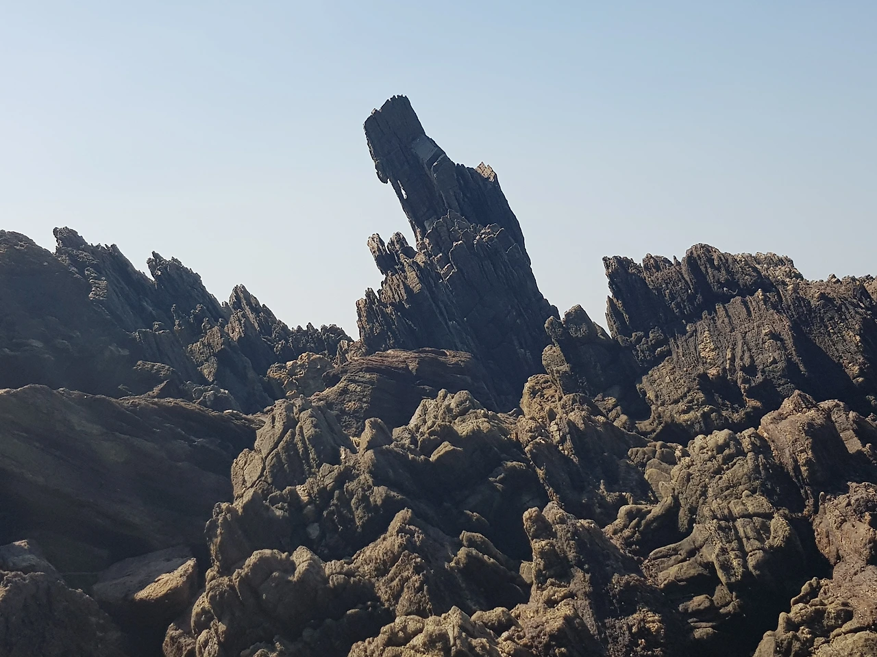 많은 돌들이 사금을 입은 듯 금빛으로 반짝이고 있었으며 돌들이 조각조각 뚝뚝 떨어져 나가는 결로 날카로웠다