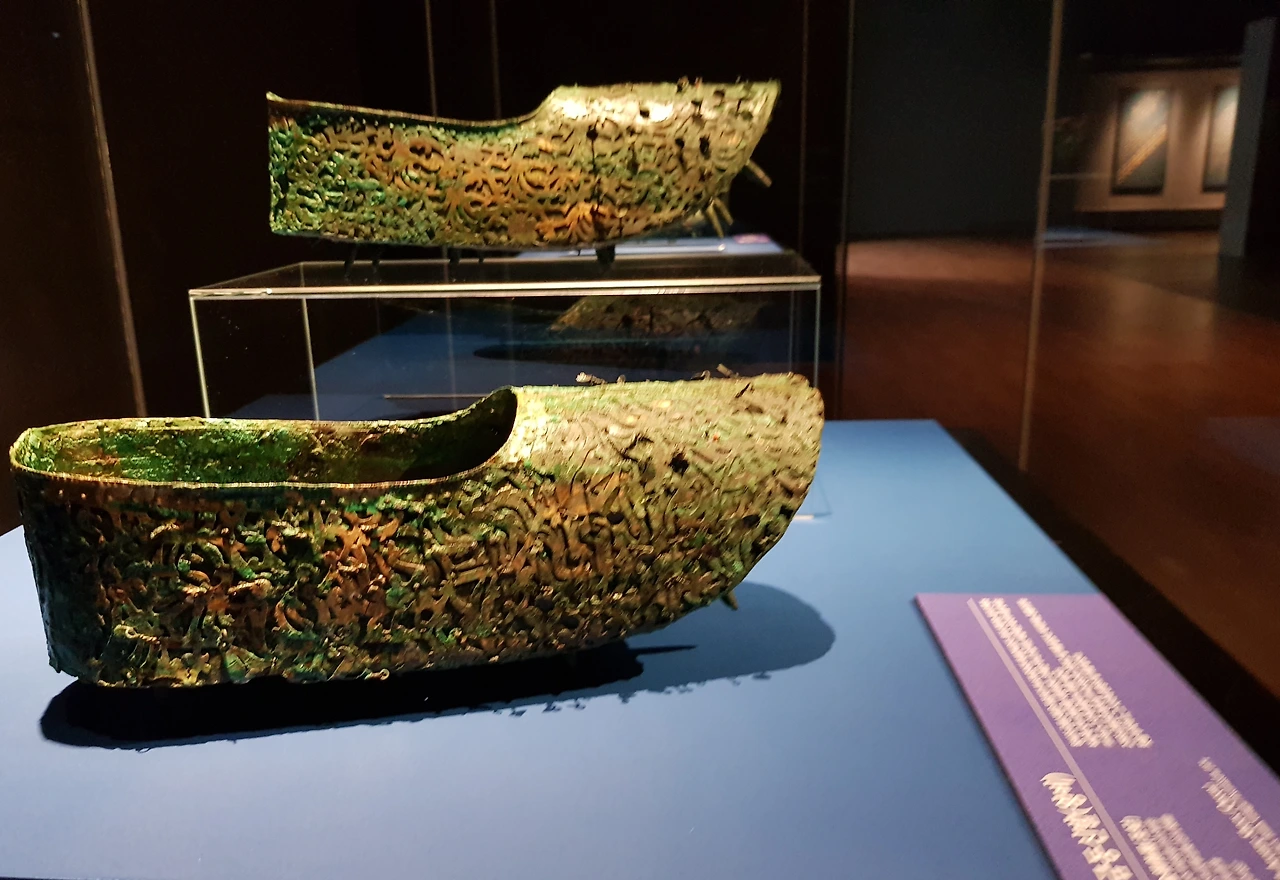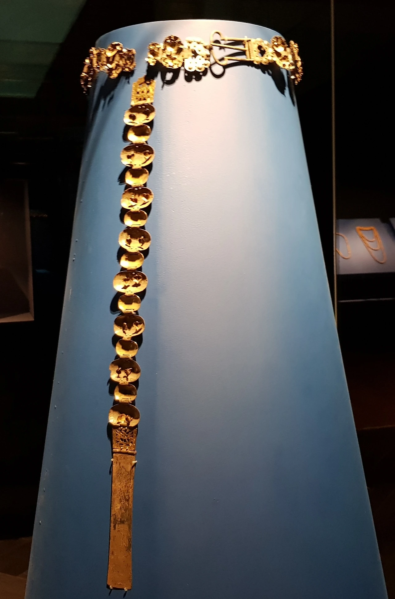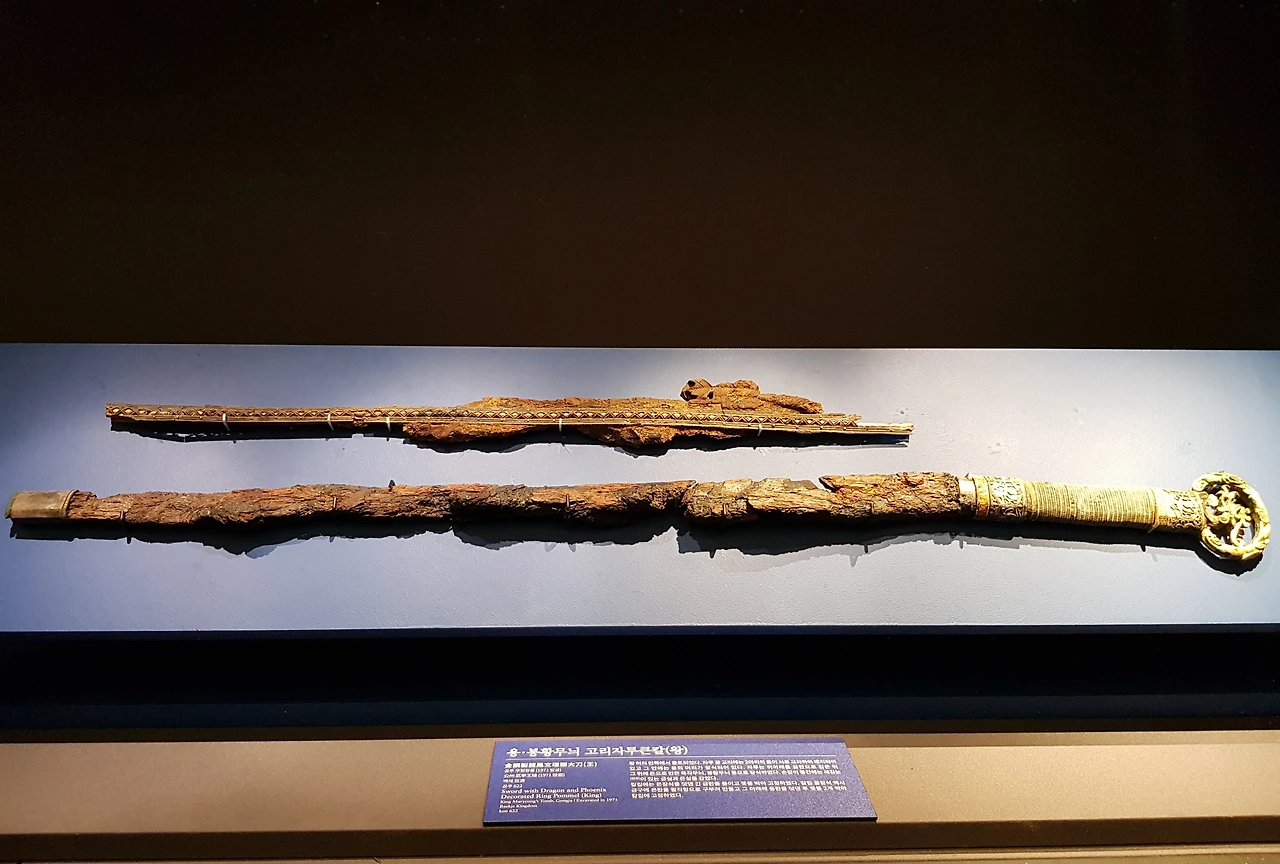 그곳에서는 왕관의 귀 장식, 장검, 단도, 황금 목걸이, 황금귀걸이, 황금 신발, 황금 허리 장식, 베개며 심지어 발을 올리는 발 베개도 있었다