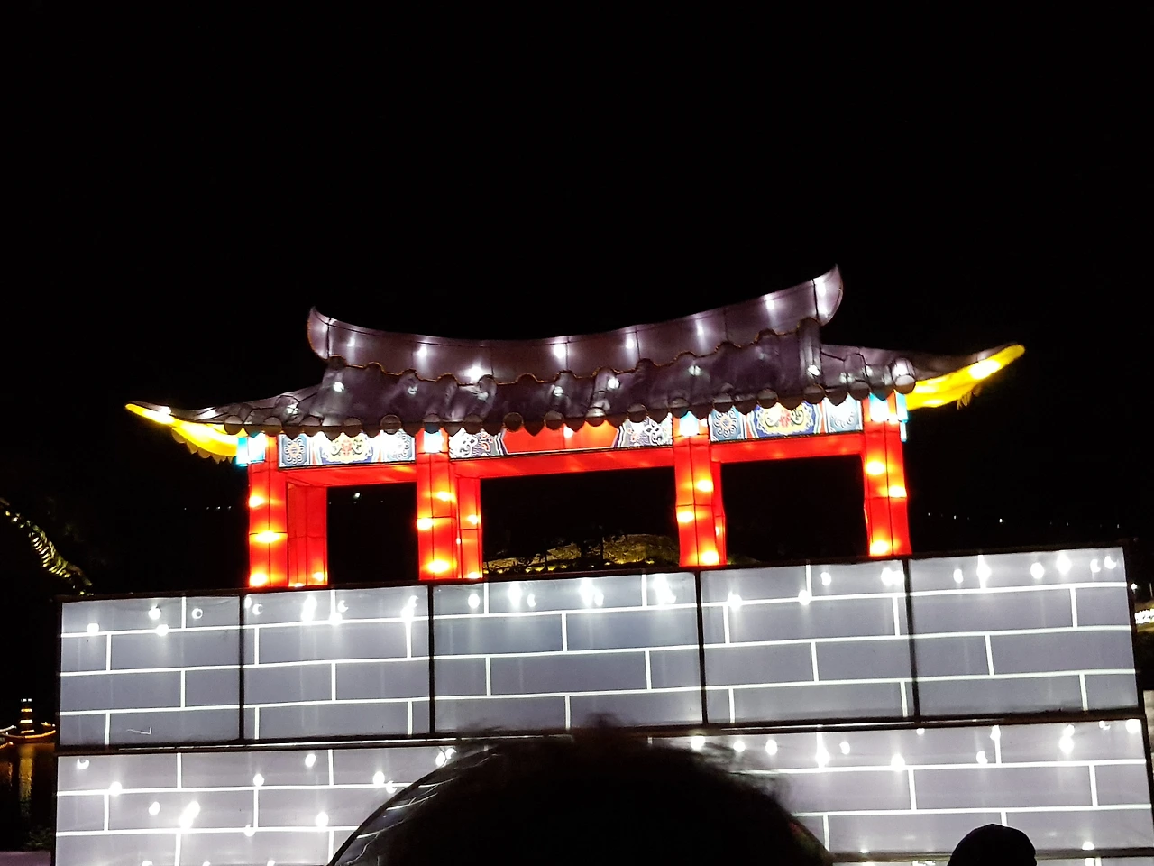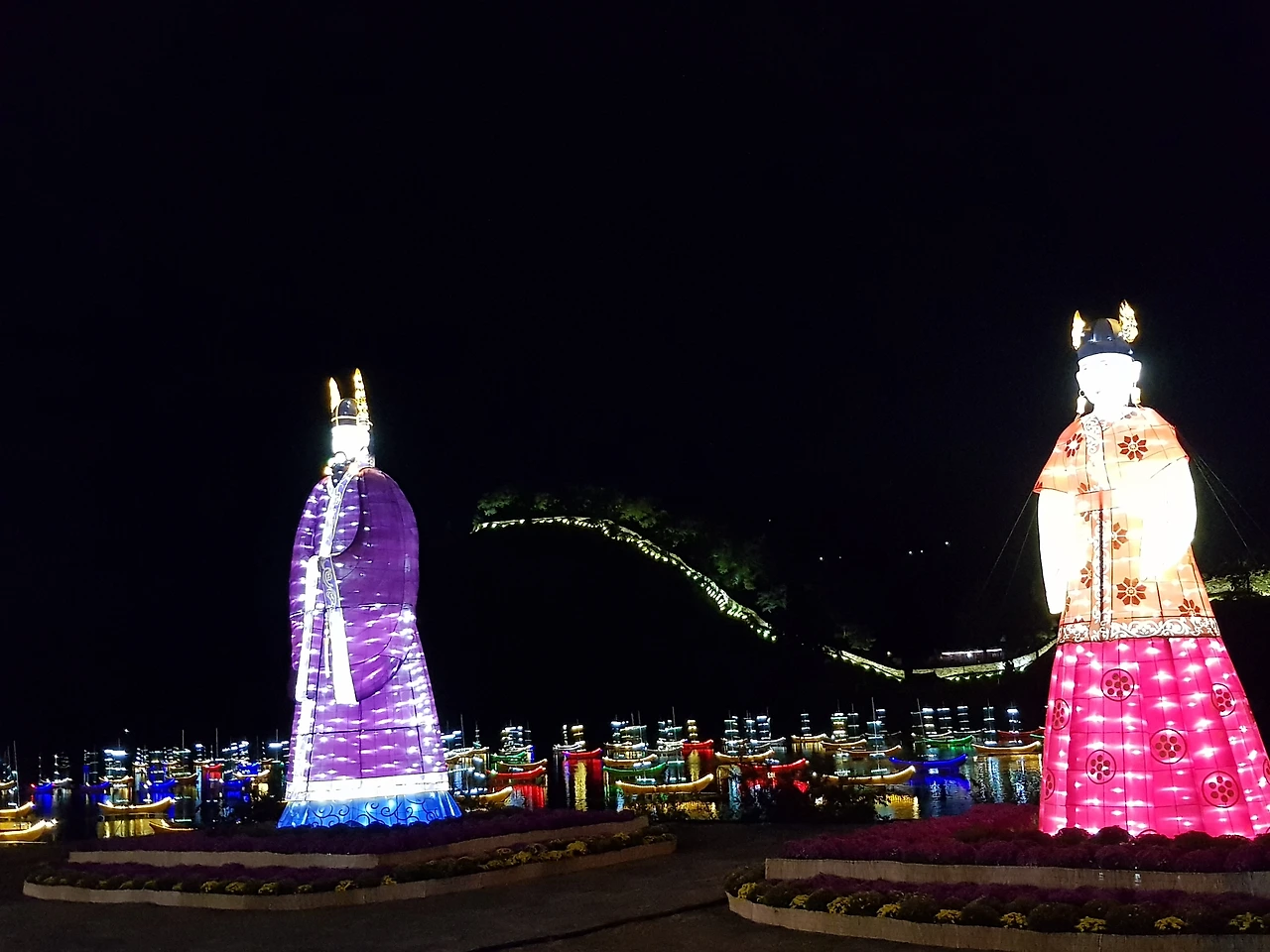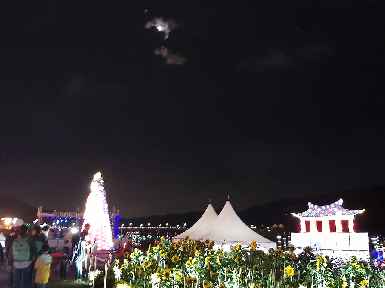 공산성을 잇는 불빛과 강가의 알록달록한 불빛의 배들, 배다리 청사초롱의 불빛과 주변의 이야기 인형들 까지도 모두 알록달록 빛을 품어내고 있었다