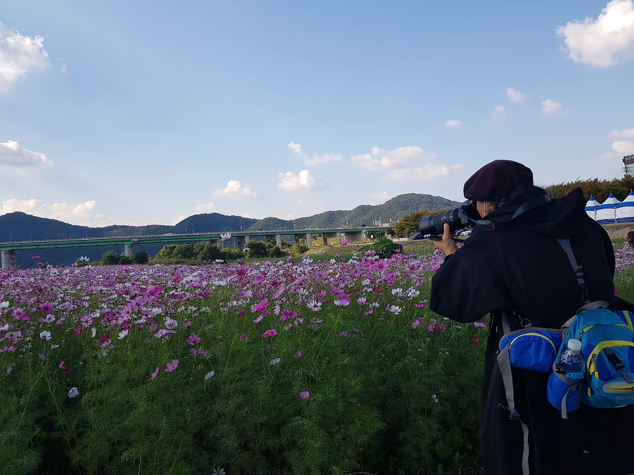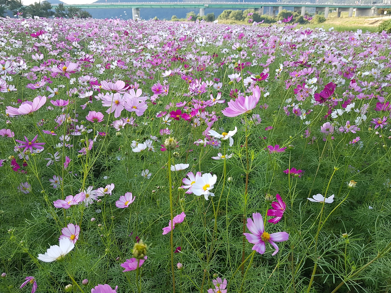 굉장히 넓은 면을 채우고 있었고 다른 꽃들도 있었는데 정말 코스모스 일색이었다