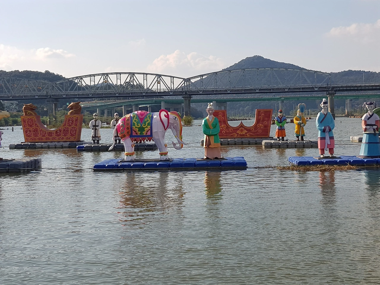 배다리 주변에는 무령왕과 연결되는 작은 이야기의 인형들이 강 위에 떠서 우리들의 이야기를 들어 보라며 손짓하고 있었다