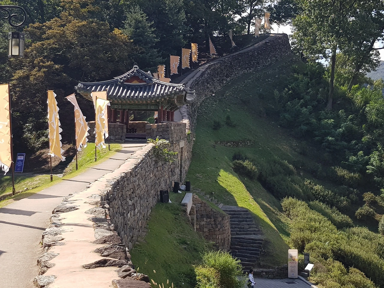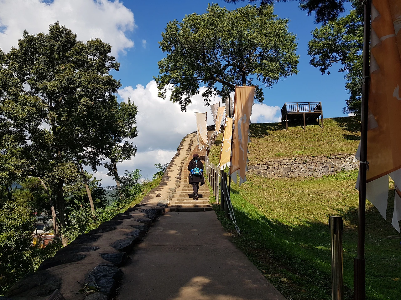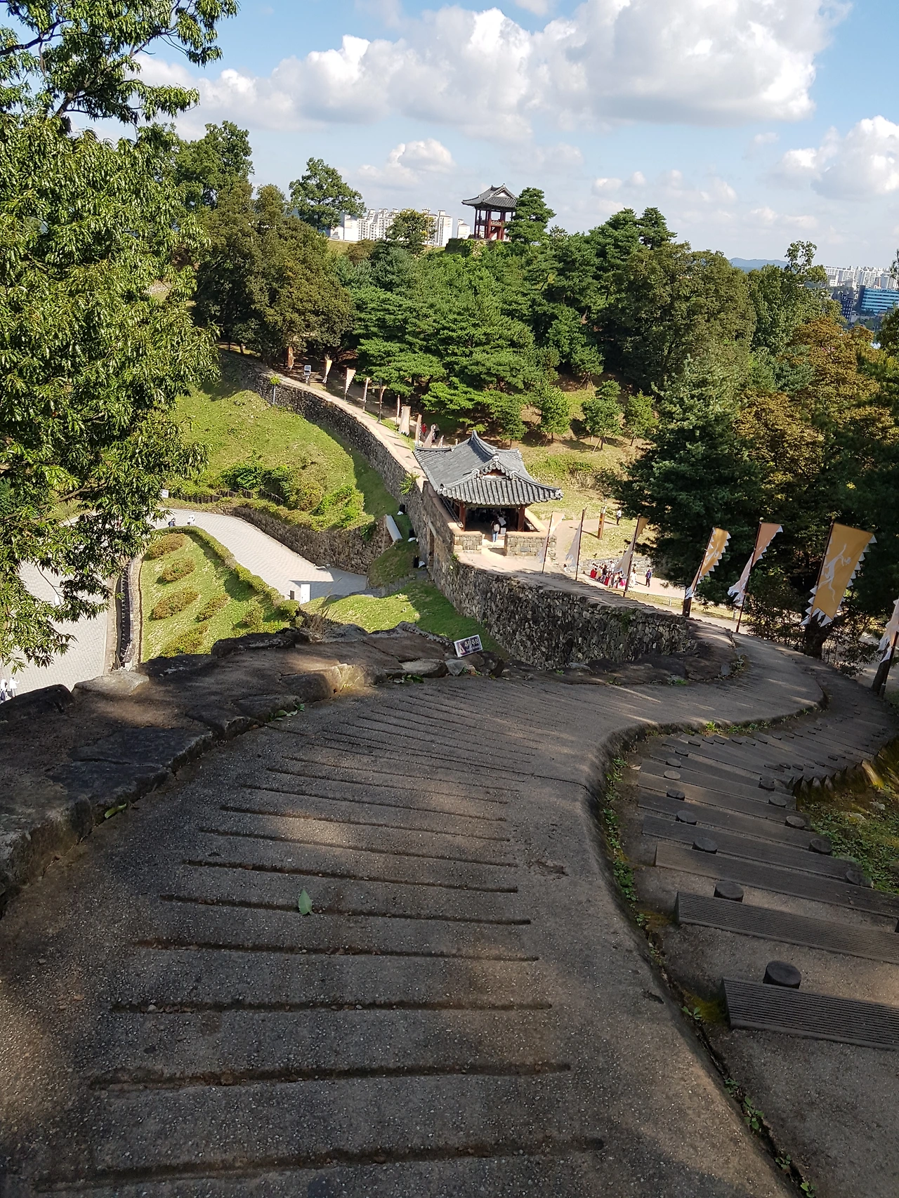 감상하며 성문을 통과하여 공산성에 올라보니 공주시가지가 훤히 내려다 보였고 가파른 성곽 위 길을 올라 공산정에 올라보니 그 옛날 적군이 오는 길목을 한눈에 볼 수 있을 것 같았다
