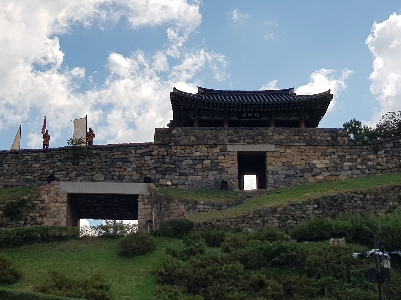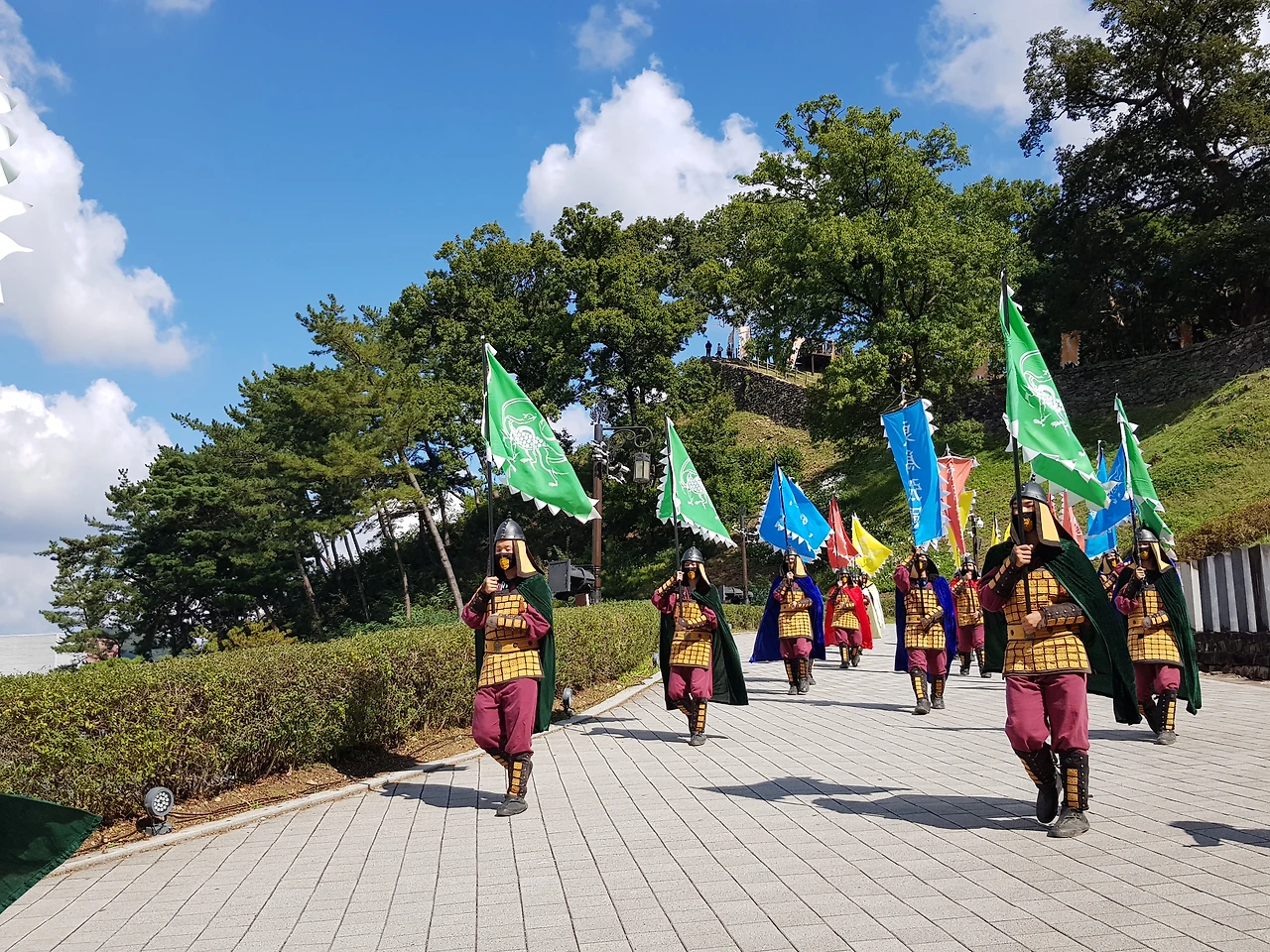 이제 금서루를 향해 오르는데 현무, 주작, 백호, 청룡의 깃발을 든 한 무리의 사병들