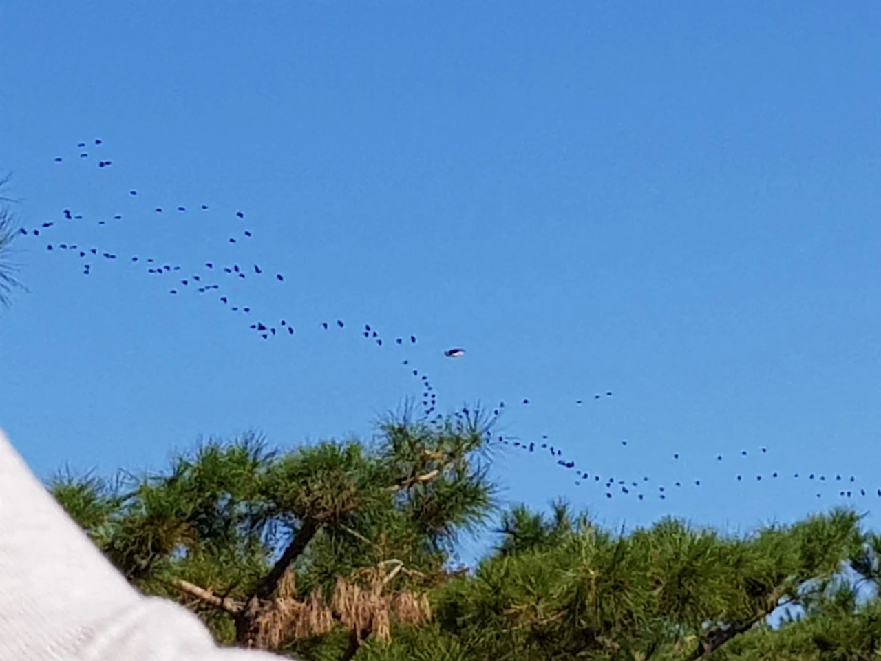 때 마침 새떼들이 하늘을 날며 환영해 주었다