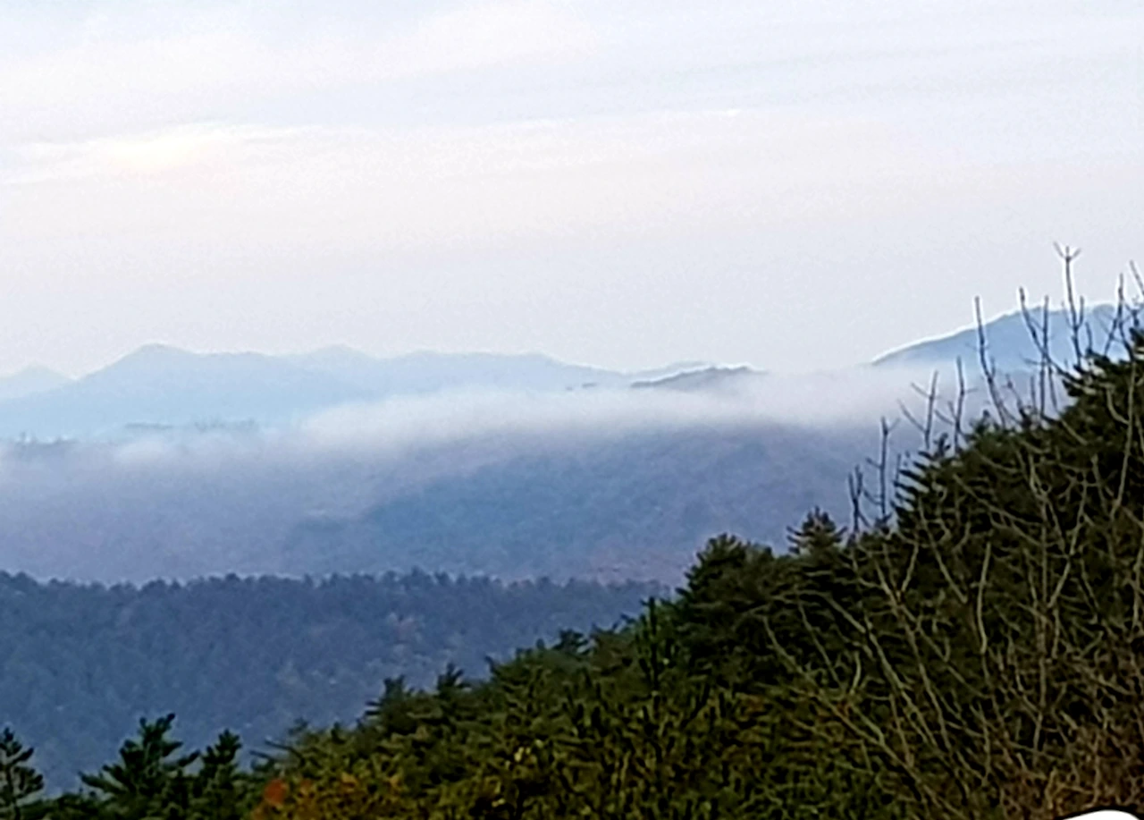 하얀 구름 산허리에 띠 두르고