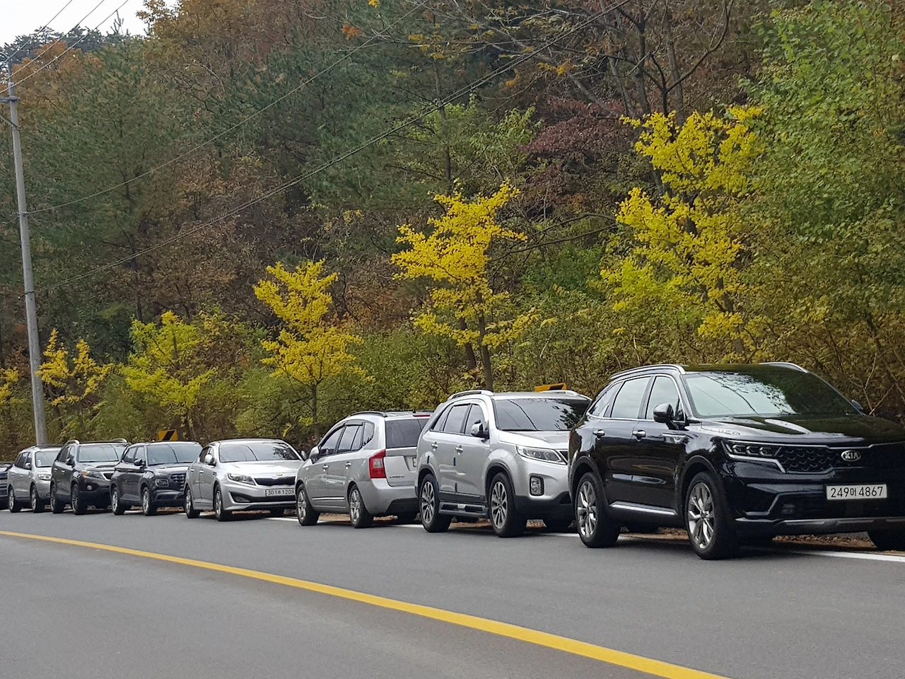 멀리에 차 세우고 인도 없는 차도 걸었다