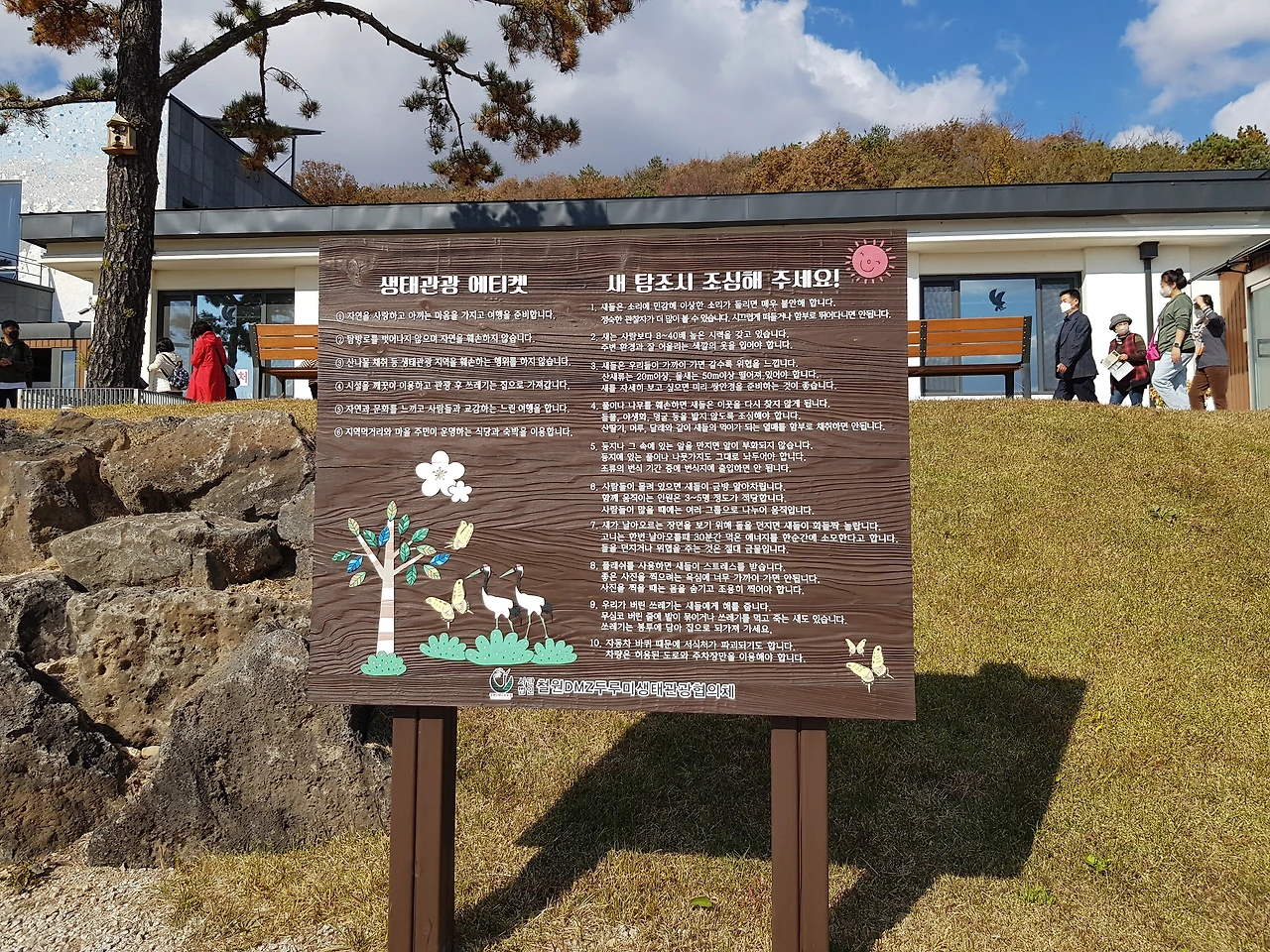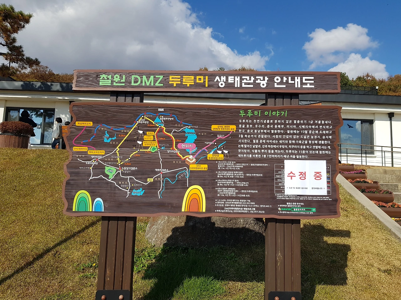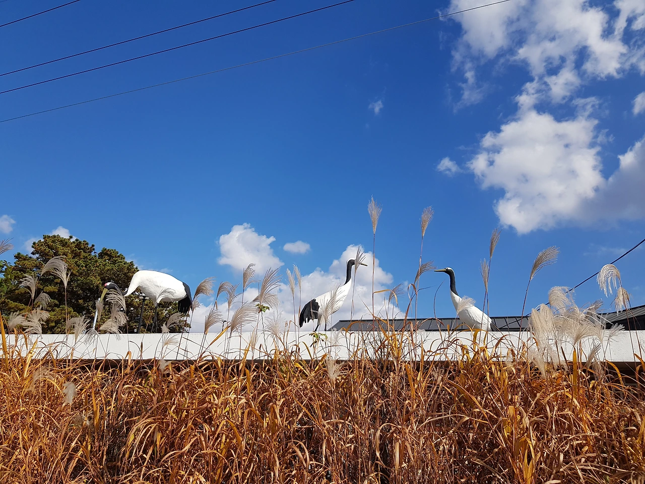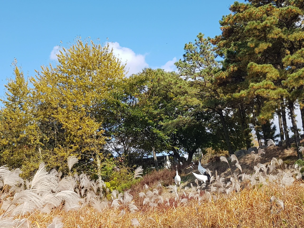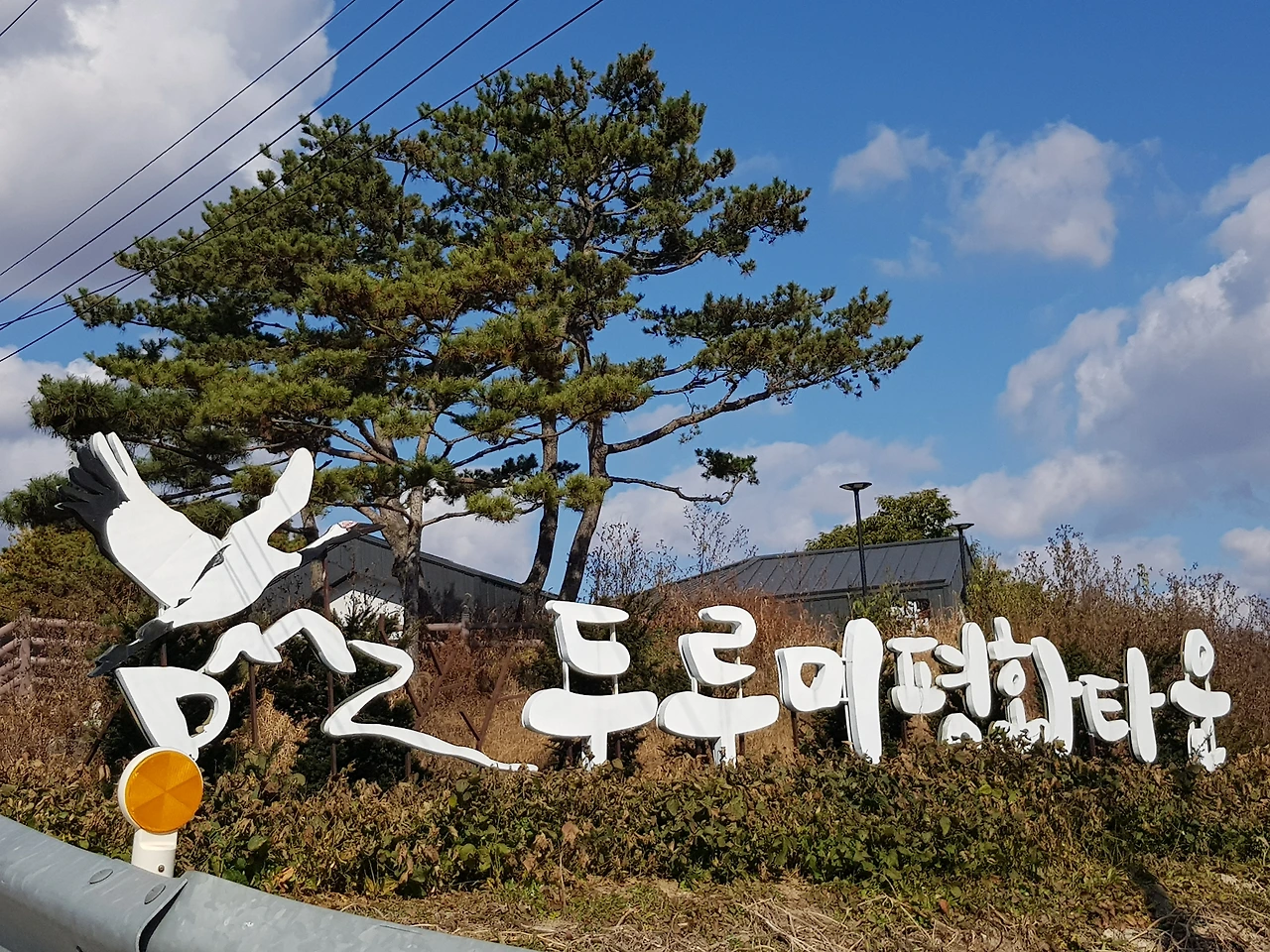 아! 이곳에 두루미들이 겨울을 나는 곳이구나 싶어 주변을 둘러보니 입구 곳곳에 두루미 모형을 비치해서 꼭 두루미가 평화를 누리며 즐기고 있는 듯했다