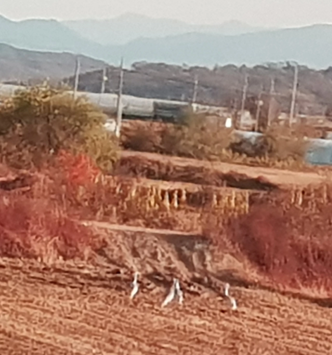 차 안에서 본 스치는 전경중 두루미 평화타운이라고ㅡ