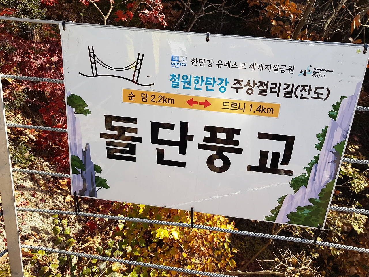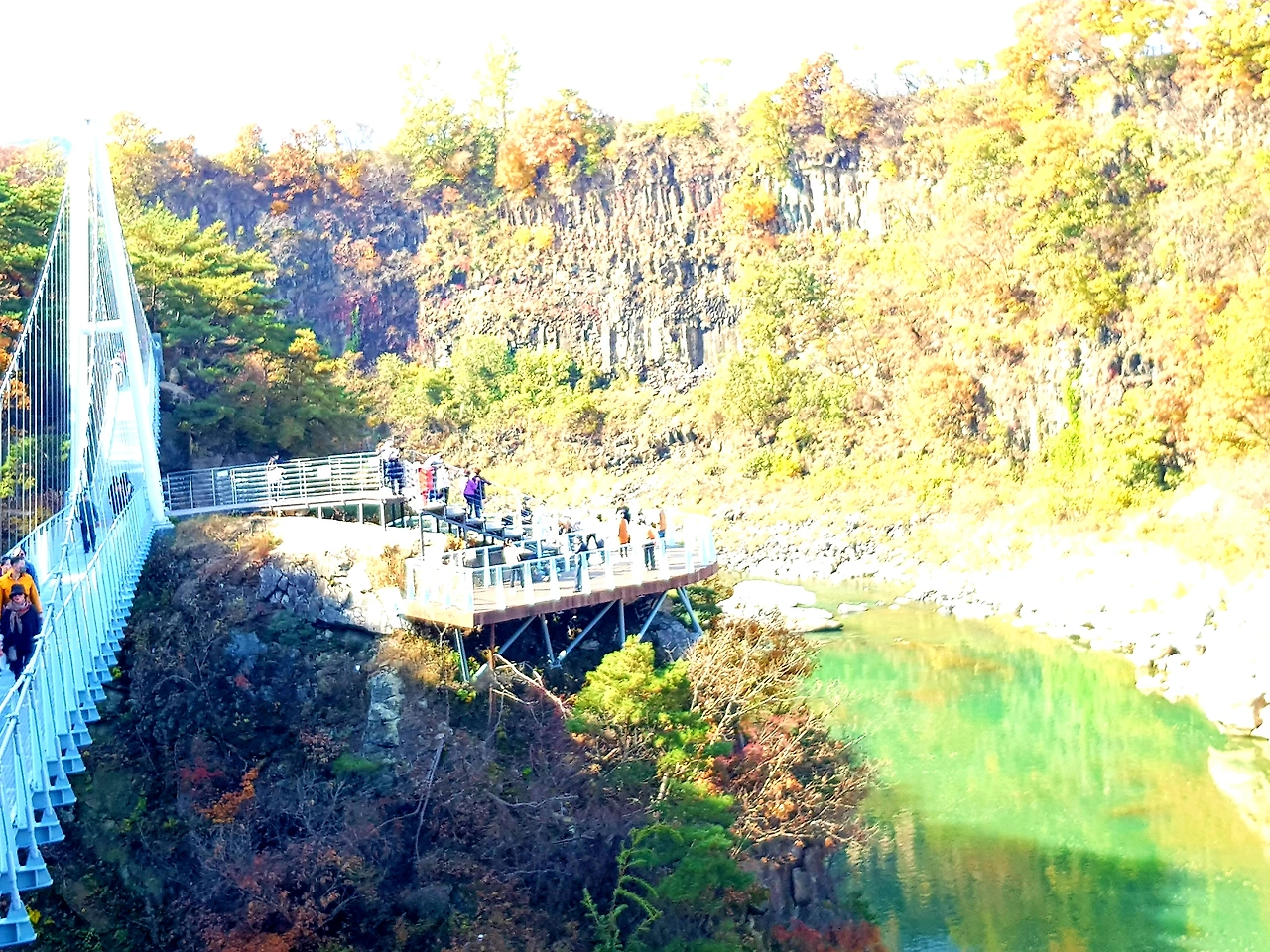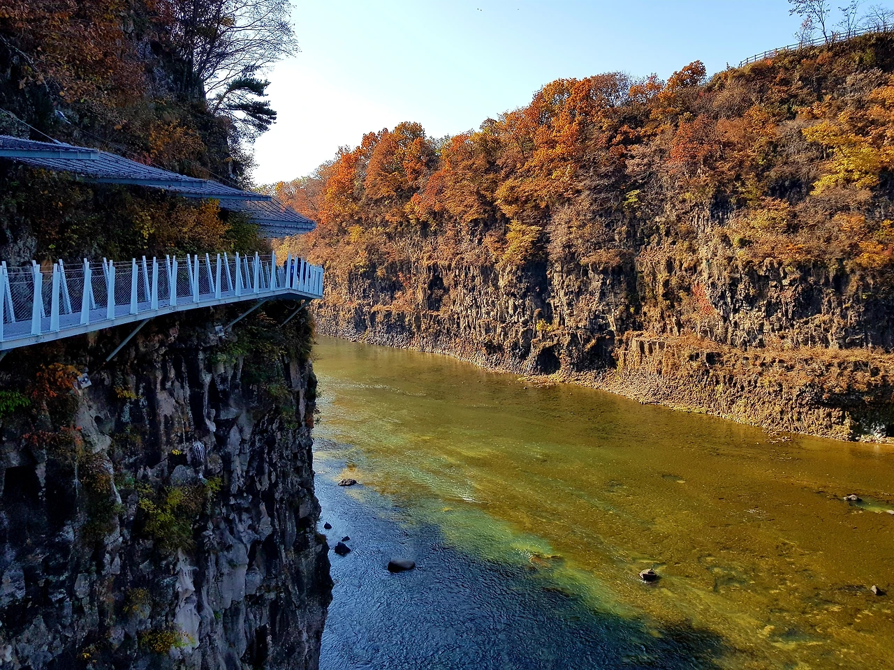 한탄강 위로 지지대에 받들어져 순담에서 드르니까지 계속되는 철제 다리? 아니 물 윗길은 걷는 내내 감탄이면서도 이 길을 만들기 위해 얼마나 많은 사람들이 고생을 했을까 라는 안타까움과 이 위험한 길을 만들면서 혹시 인명사고는 없었는지 걱정도 되었다
