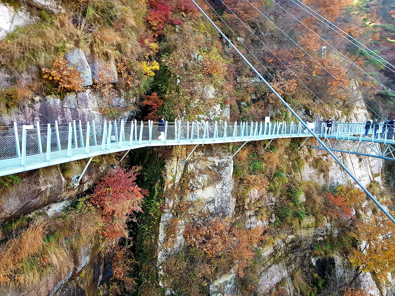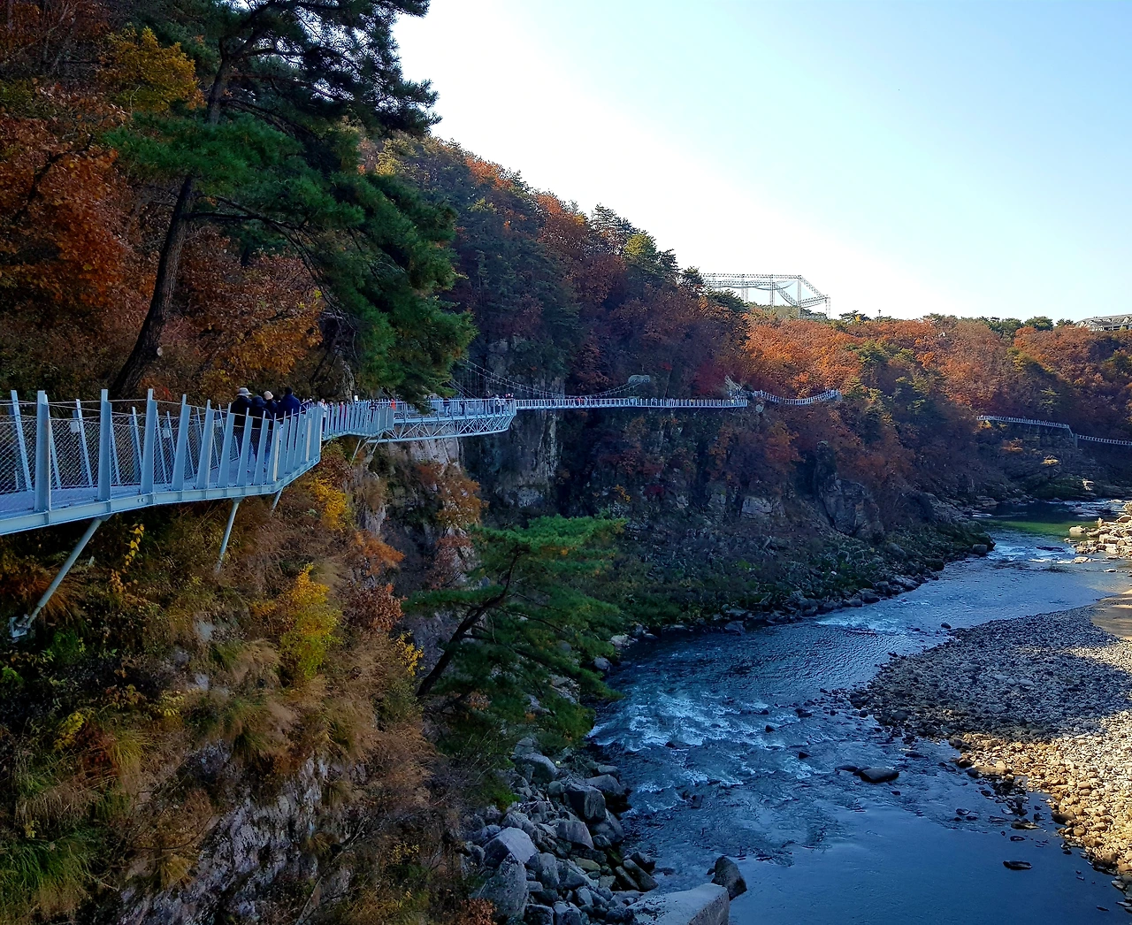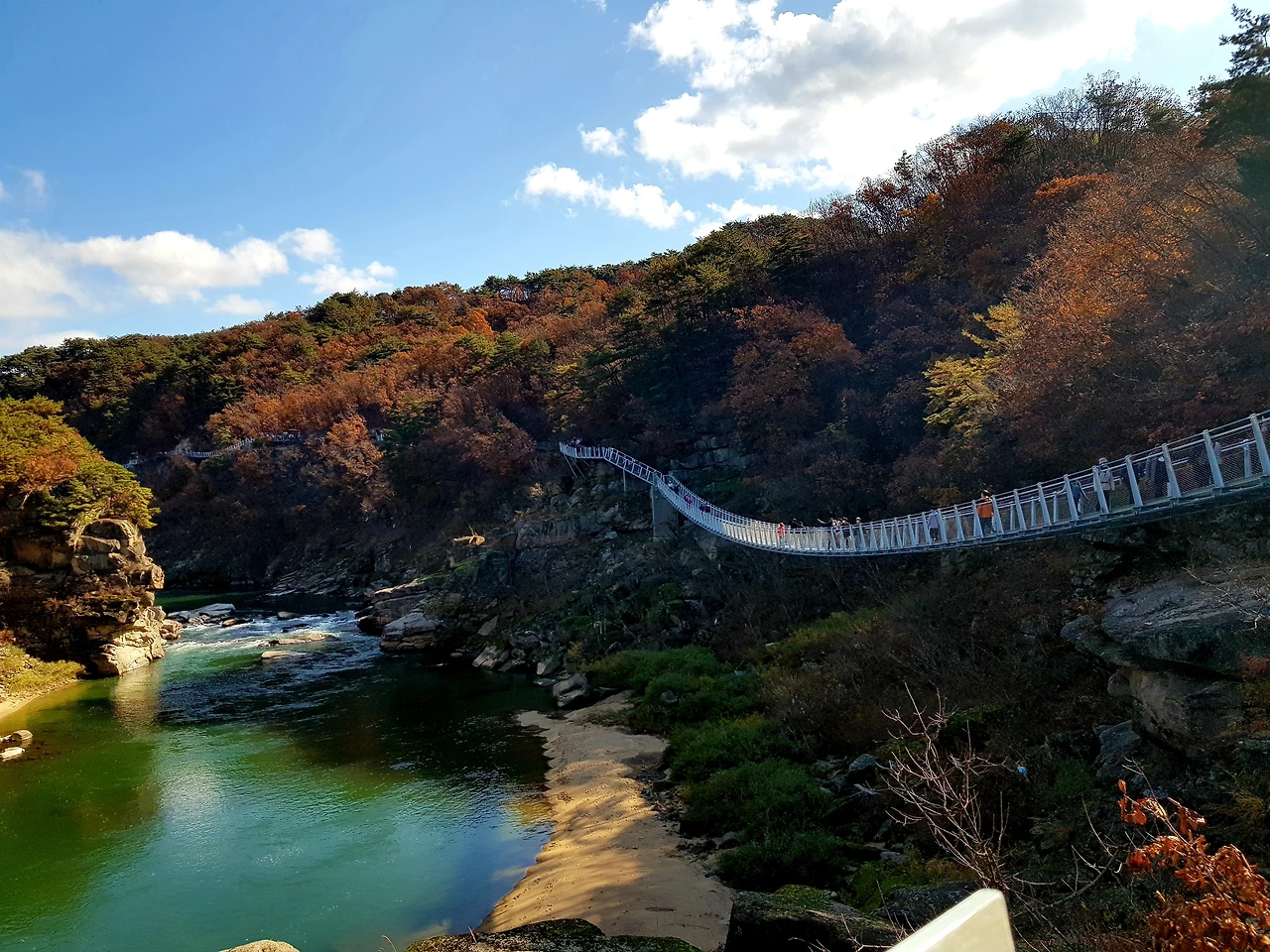 한탄강 위로 지지대에 받들어져 순담에서 드르니까지 계속되는 철제 다리? 아니 물 윗길은 걷는 내내 감탄이면서도 이 길을 만들기 위해 얼마나 많은 사람들이 고생을 했을까 라는 안타까움과 이 위험한 길을 만들면서 혹시 인명사고는 없었는지 걱정도 되었다