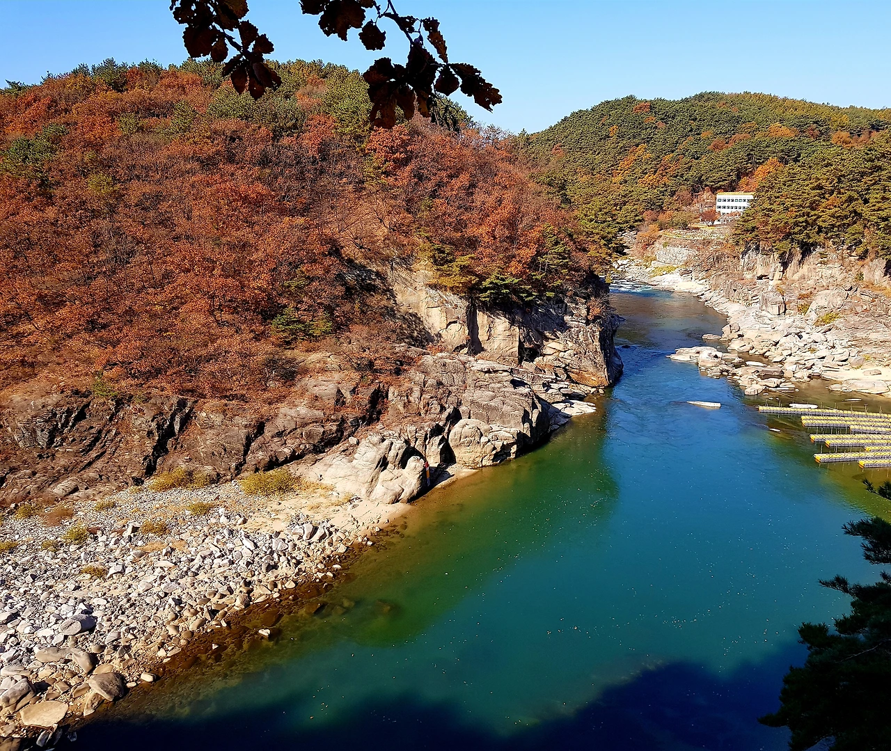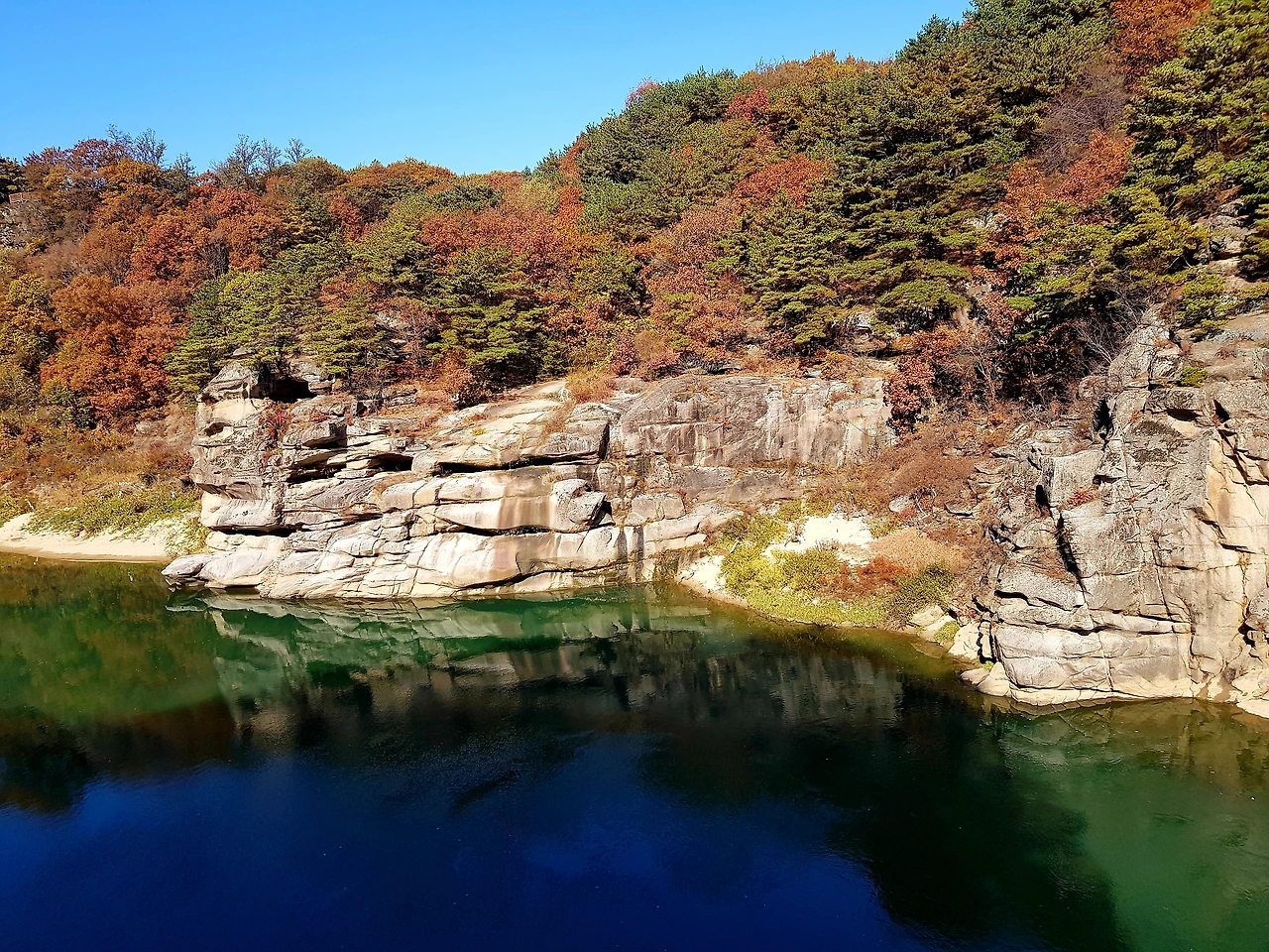 아마도 단풍이 한창 예쁠 때 이 물 윗길을 걷는다면 금상첨화일듯했다
