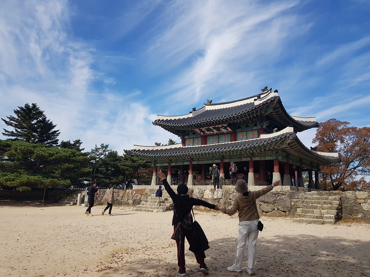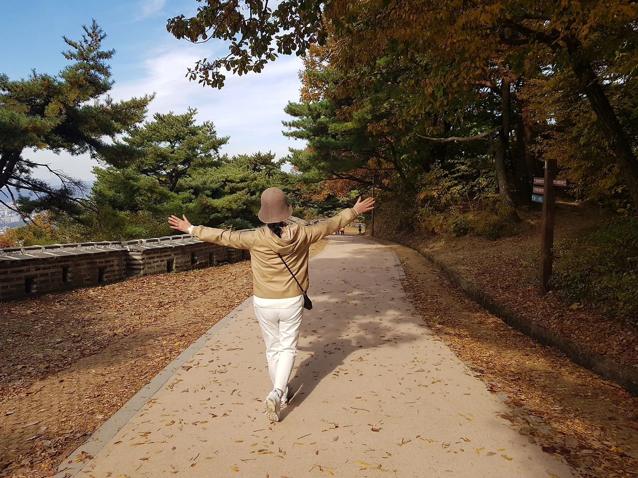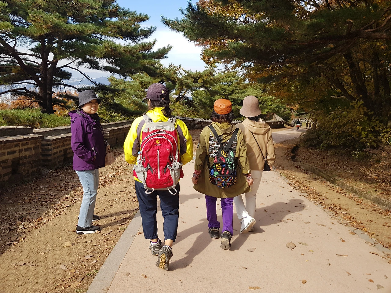 예전에 없던 용기가 어디서 나오는지 여행객들이 박수를 치며 지나가도 몇 곡을 모두같이 신나게 부르고는 다시 길을 따라 수어장대로 향했다