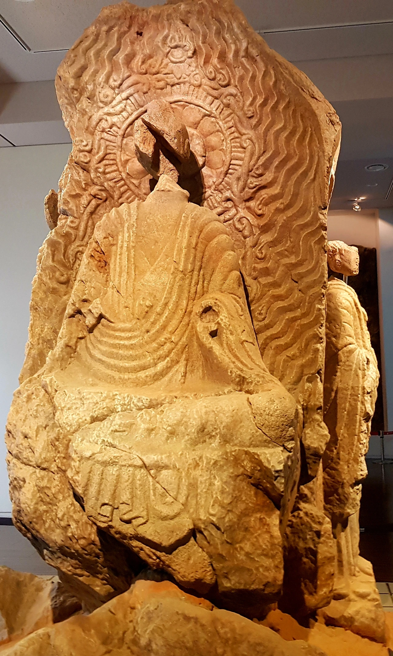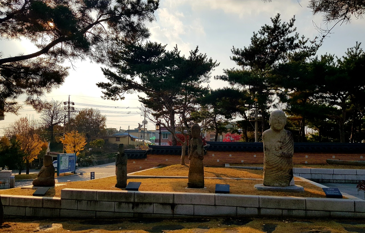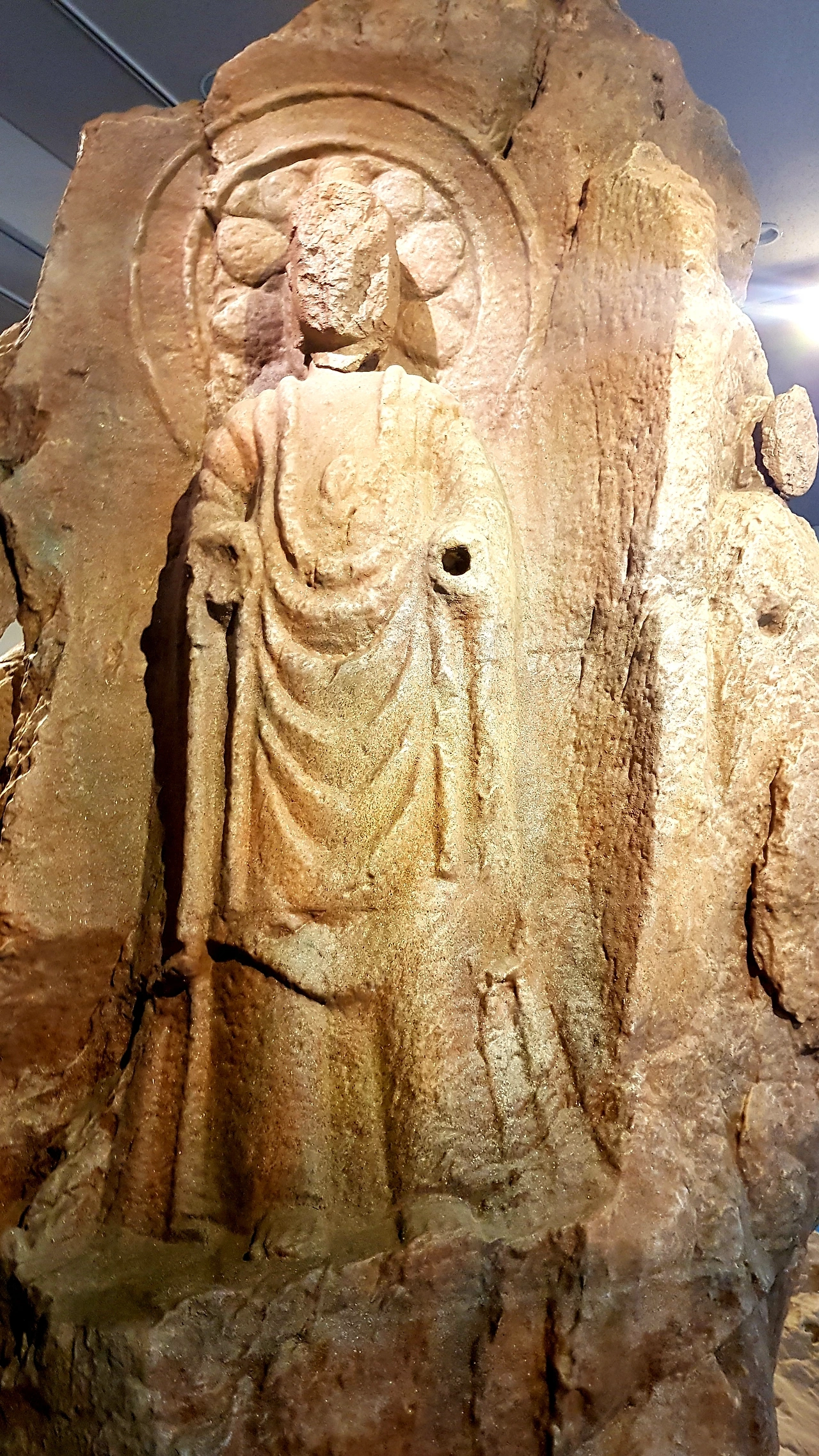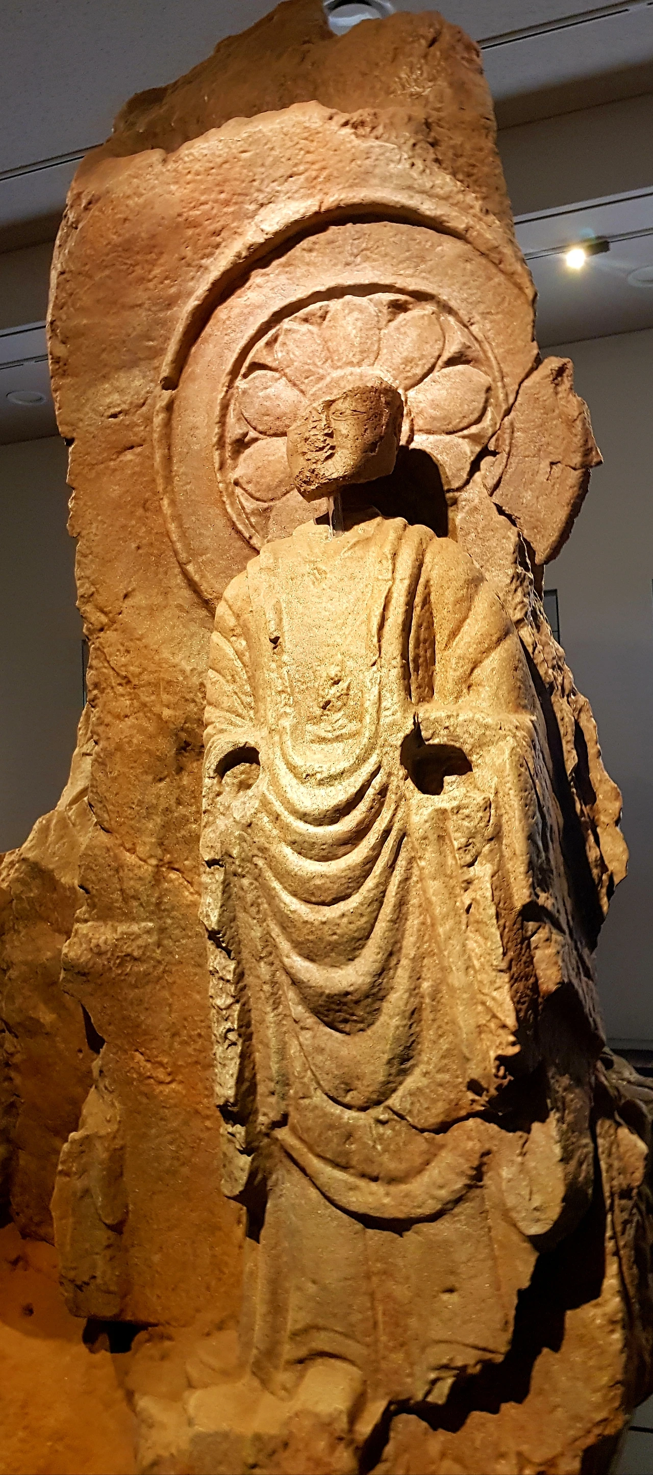 여산 화전리 4면 불상이었는데 커다란 바위의 4면에 각기다른 불상을 입체형으로 조각한 것으로 우리나라에 유일한 불상 같았는데 얼굴부분이 심하게 훼손되고 손은 다 사라져 누군가 의도적으로 파과한 것 같다 아픈마음에 얼굴의 표정과 손의 형상을 상상해보며 돌아보는데 가사의 선이 자연스럽고 그흐름이 정말 아름다웠다