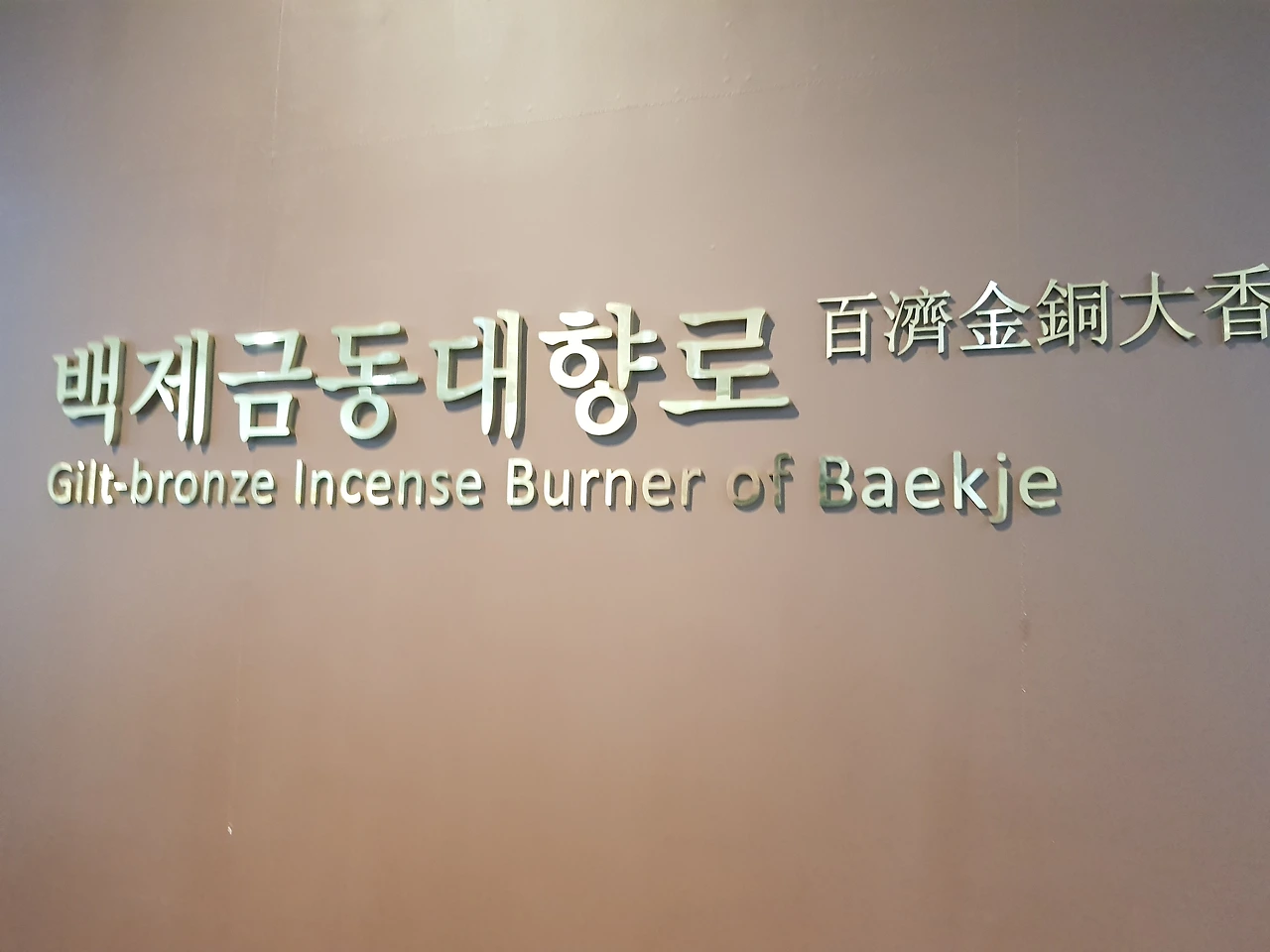 ㅡ금동대향로는 1993년 능산리 사찰터에서 발굴 되었으며 용이 향로를 입으로 물어 올린 모습이며 몸체는 연꽃, 뚜껑은 산봉우리가 층층이 겹쳐진 모양이며 뚜껑 위에는 봉황이 날개를 활짝 피고 앉아있다ㅡ고 쓰여 있었다