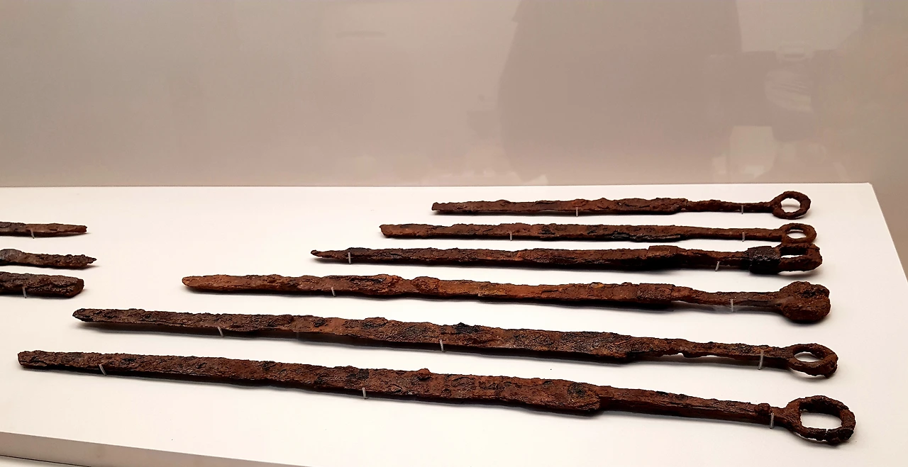 먼저 1관에는 부여의 선사와 고대문화에 대한 물건들이었는데 항아리와 농기구가 있었고 특히 서산 봉산리유적지에서 출토된 고리달린 큰 칼이 인상적이었다