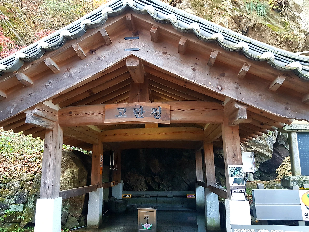 고란정 입구에 시주함이 있었는데 들어가려는 나를 만류하는 짝꿍은 시주함이 있는데 종교를 떠나 약수를 거저 마시고 가면 효험이 없다며 굳이 두 사람 몫으로 시주함에 넣으라며 지폐를 건넨다