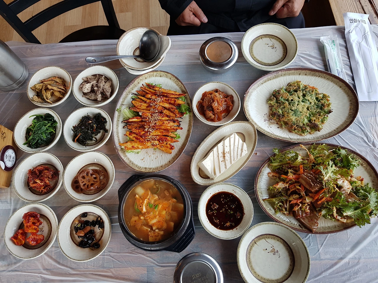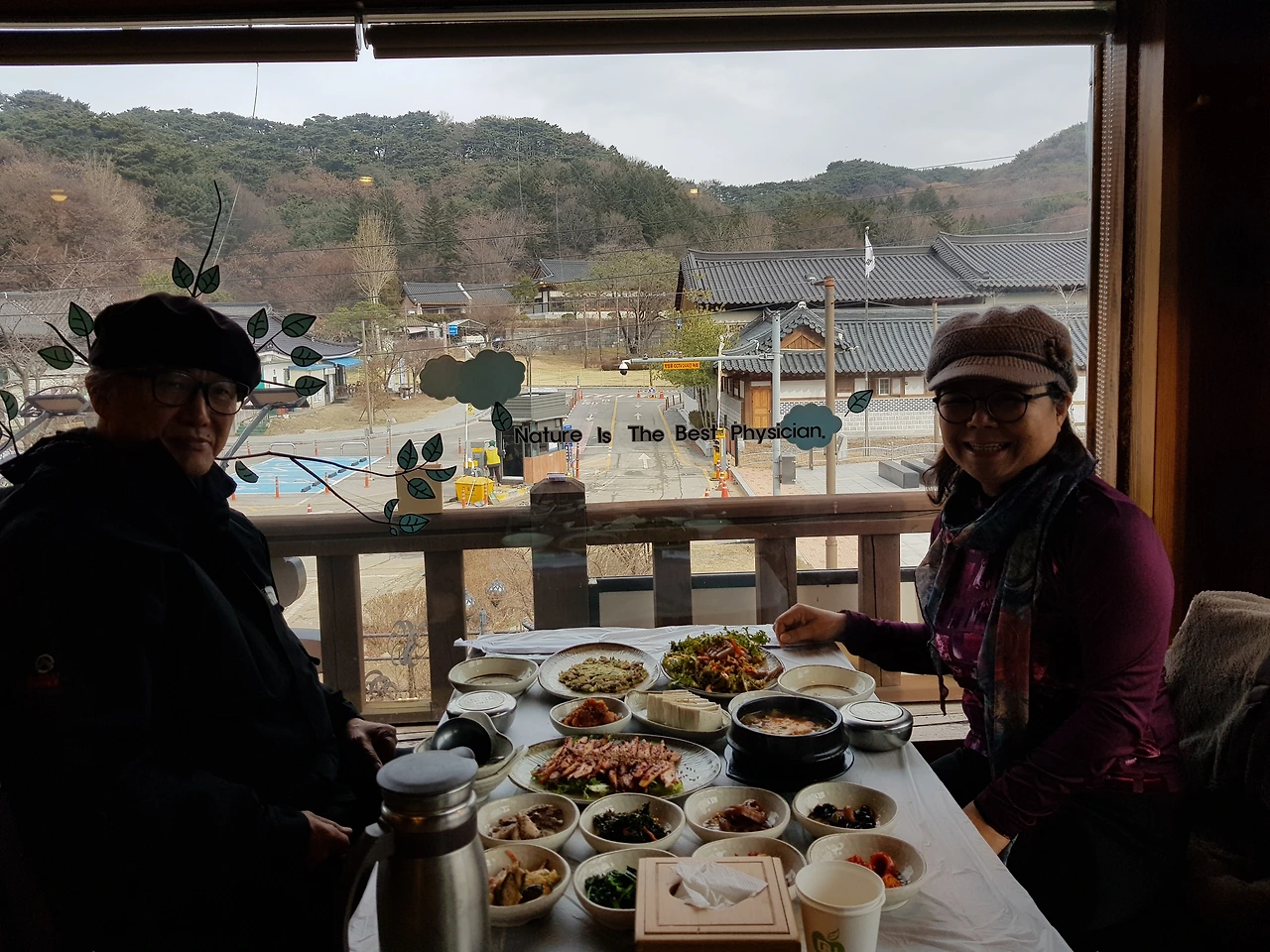 풍경이 잘 내려다 보이는 2층에 자리하고 이 집의 자랑 더덕 정식을 시켰다