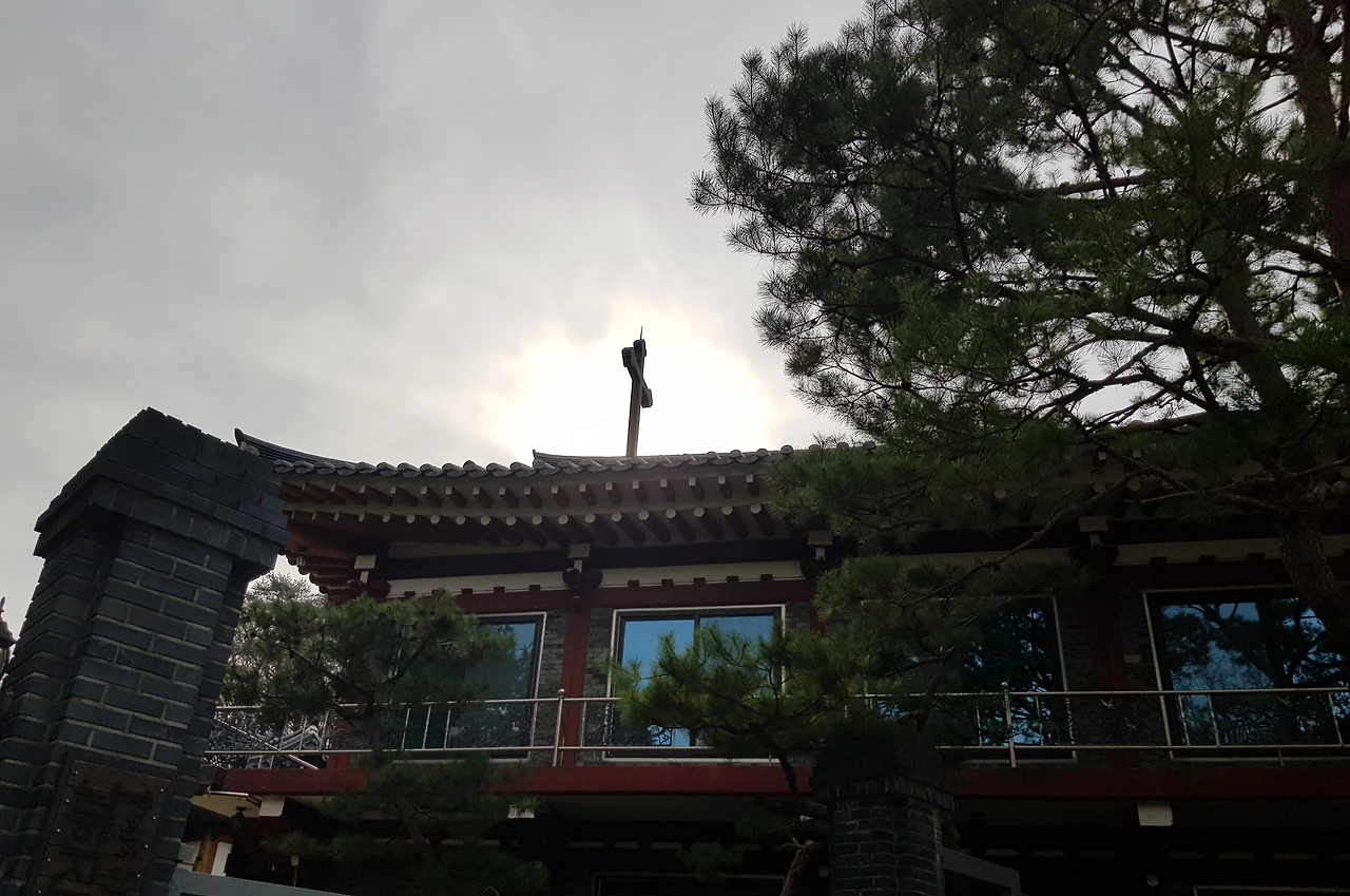 안타까운 마음에 대문을 한 컷 담고는 지붕 위에 있는 십자가에