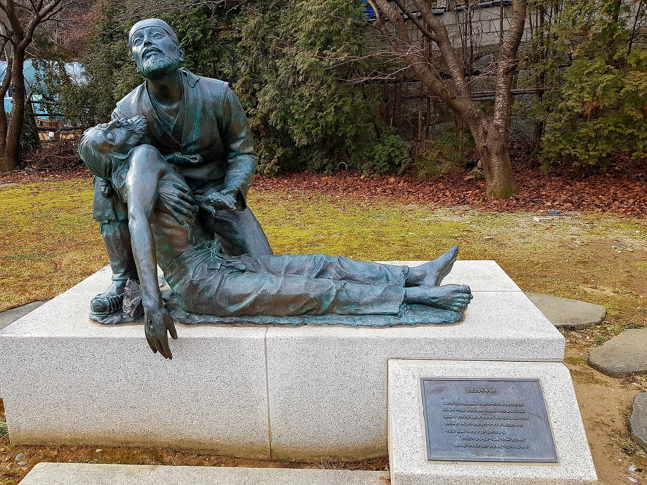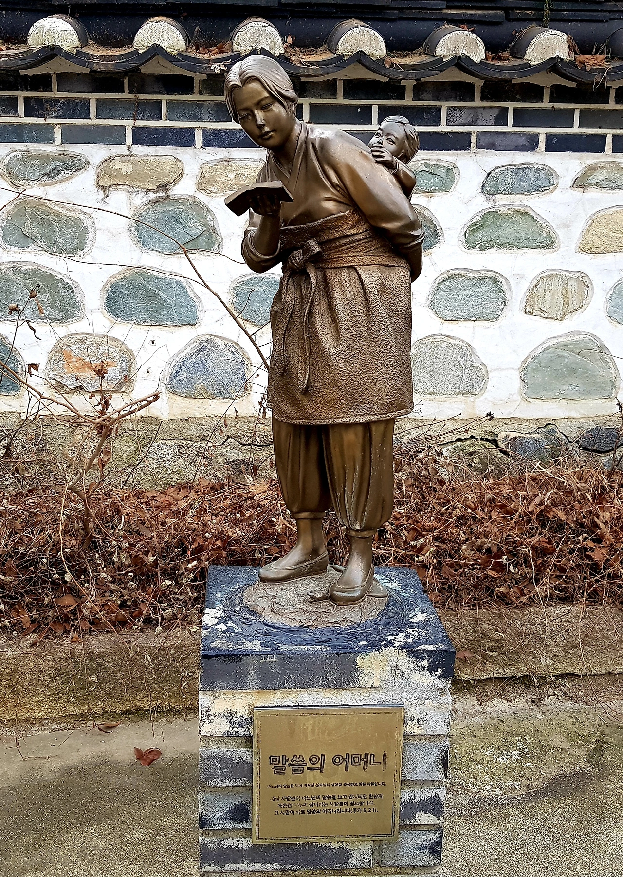 작은 길을 사이에 두고 순례자의 집 앞에 세워진 어머니 말씀 동상 앞에 섰는데 성서를 손에 들고 읽고 있는 그 표정이 인자하면서도 또 결연해 보였다