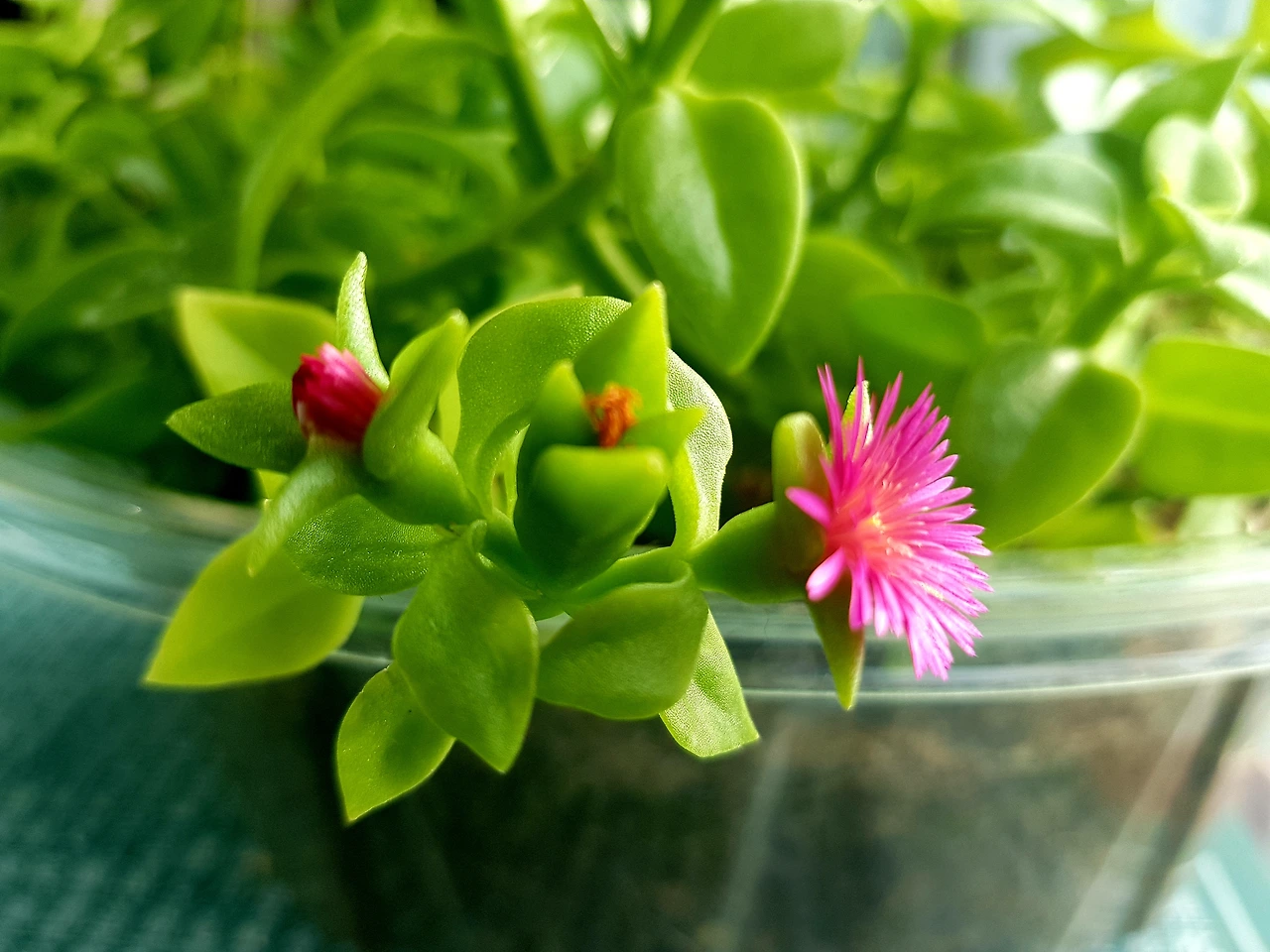 핑크빛 아주 작은 솔잎 채송화 꽃