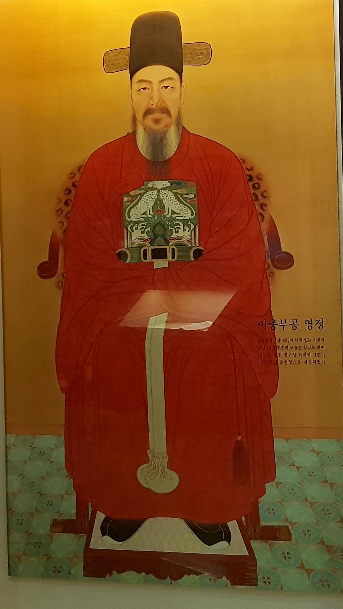 이순신 장군의 커다란 영정이 모셔져 있었는데??? 영정의 틀이 눈에 거슬렸다