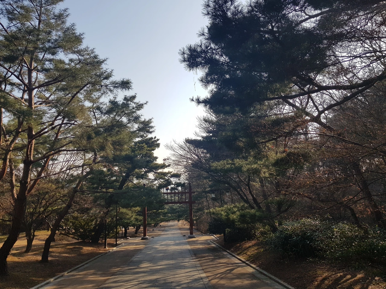 소나무길을 걷다 보니? 예전에는 홍살문이 없었던 것 같았는데 홍살문이 나오고 저 앞에