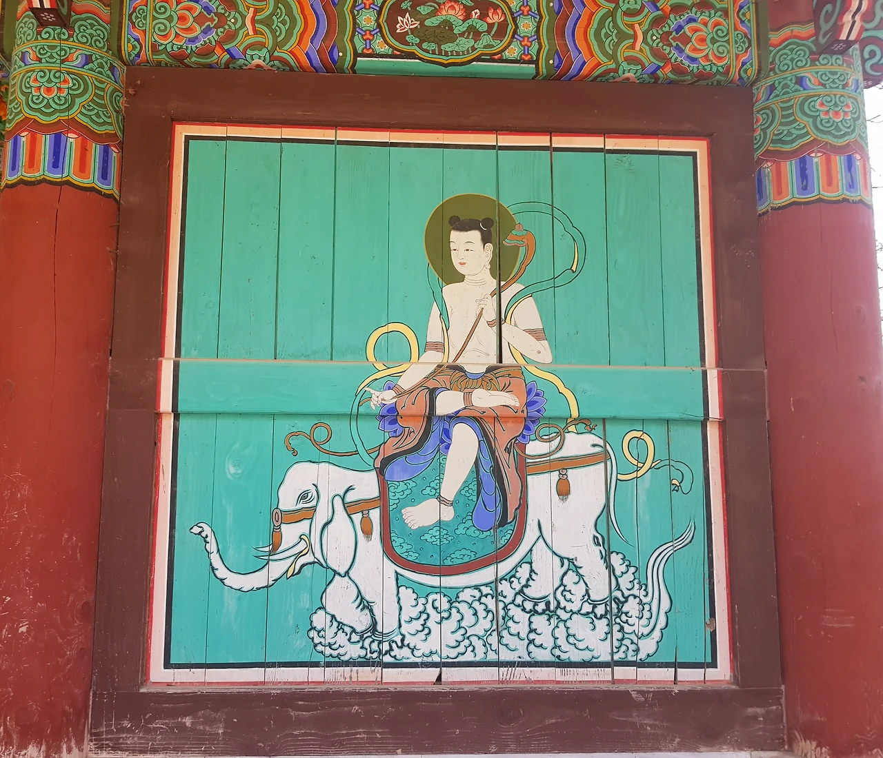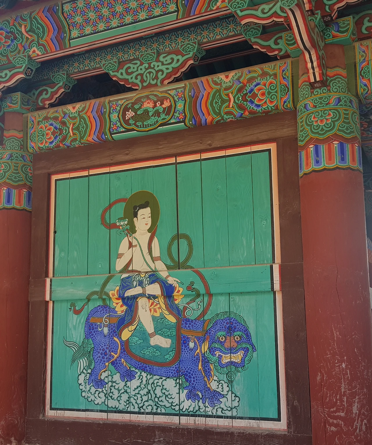 금강문을 나오다 벽화에 그려진 그림을 보며 수덕사의 대웅전 뒤 산 높이에 있는 비구니 참선도량 견성암을
