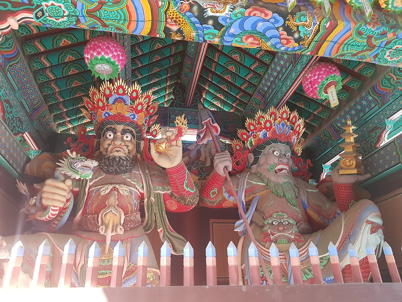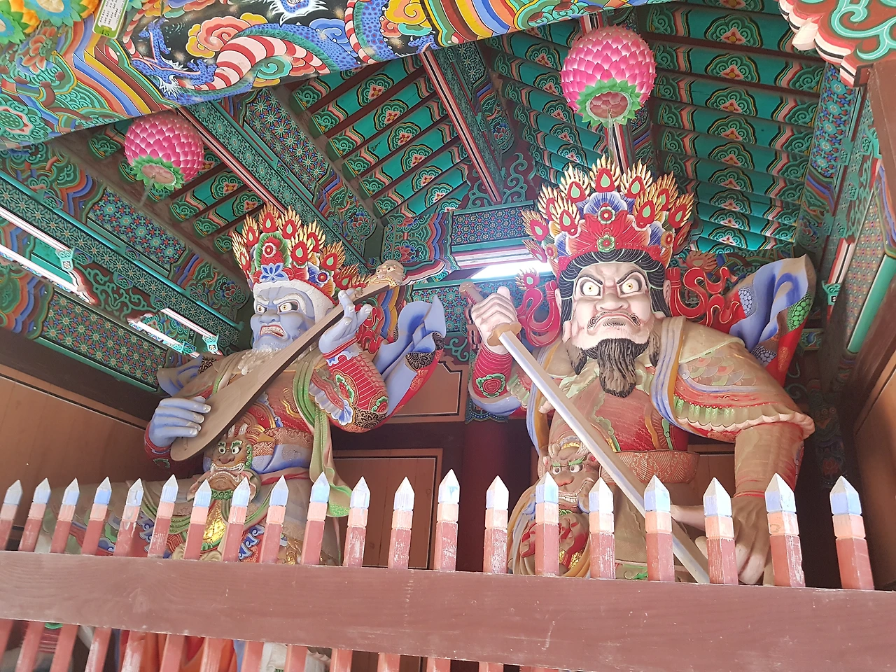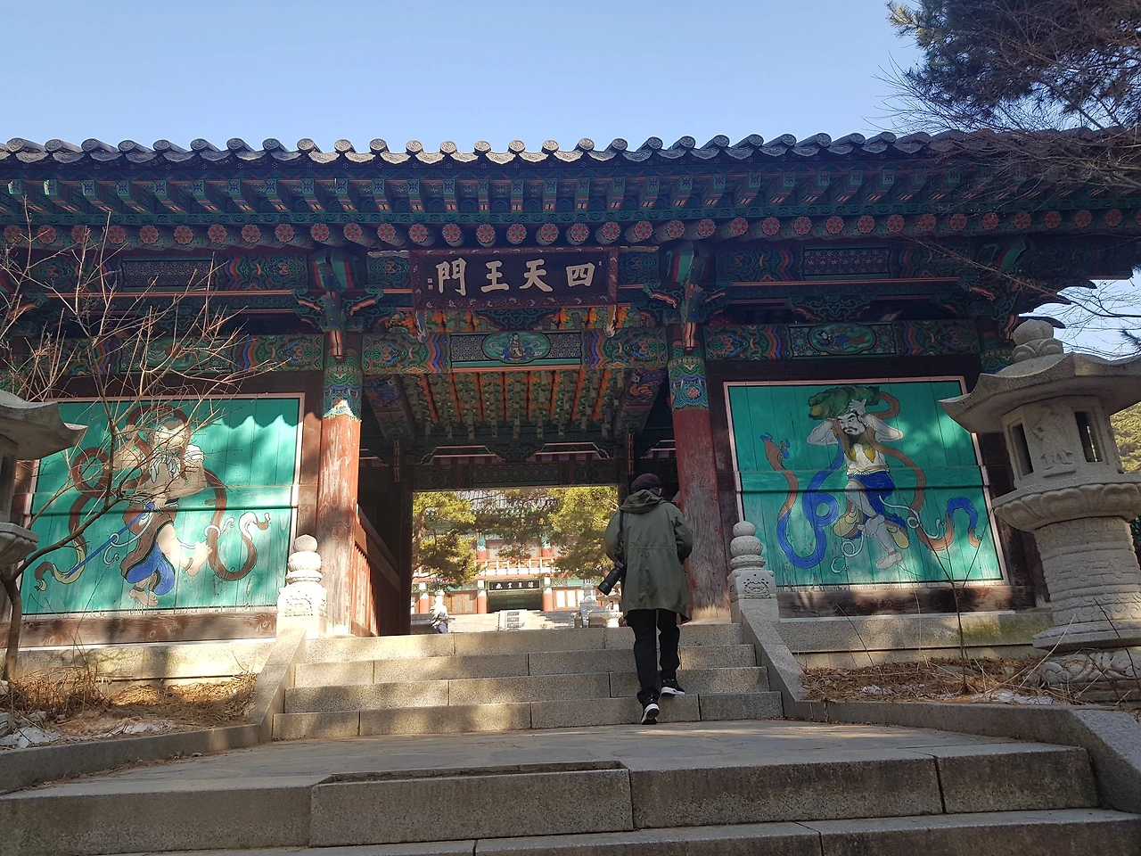 지나 해탈교 건너 미술관은 작업 중이라고 조금 더 올라 금강문을 지나 사천왕문을 통과하며 해학적인 사천왕상이 이젠 반가움도 담긴다