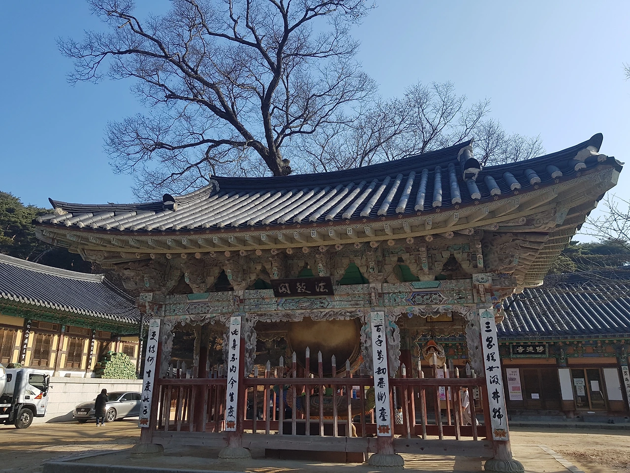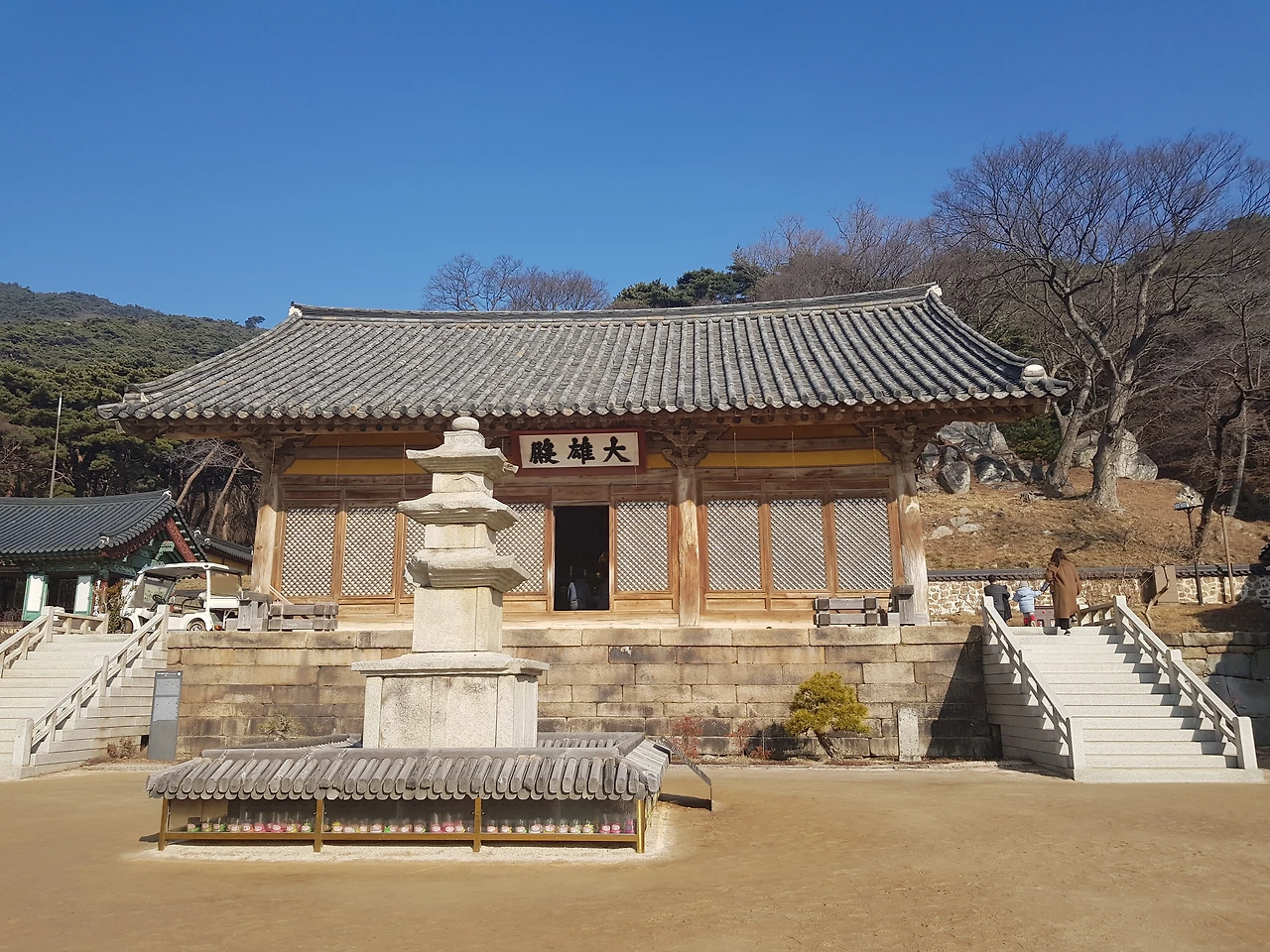 아! 일주문의 위치가 바뀌었구나 라며 계단을 올라 삼층탑을 돌아 대웅전으로 향했다