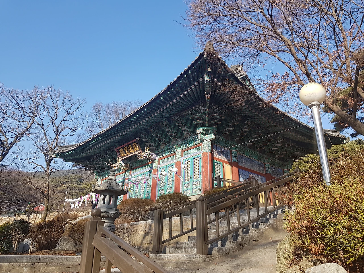 대웅전 안에는 신자들이 절을 하며 기도를 하고 있어 옆 문으로 들여다볼 수밖에ㅡ