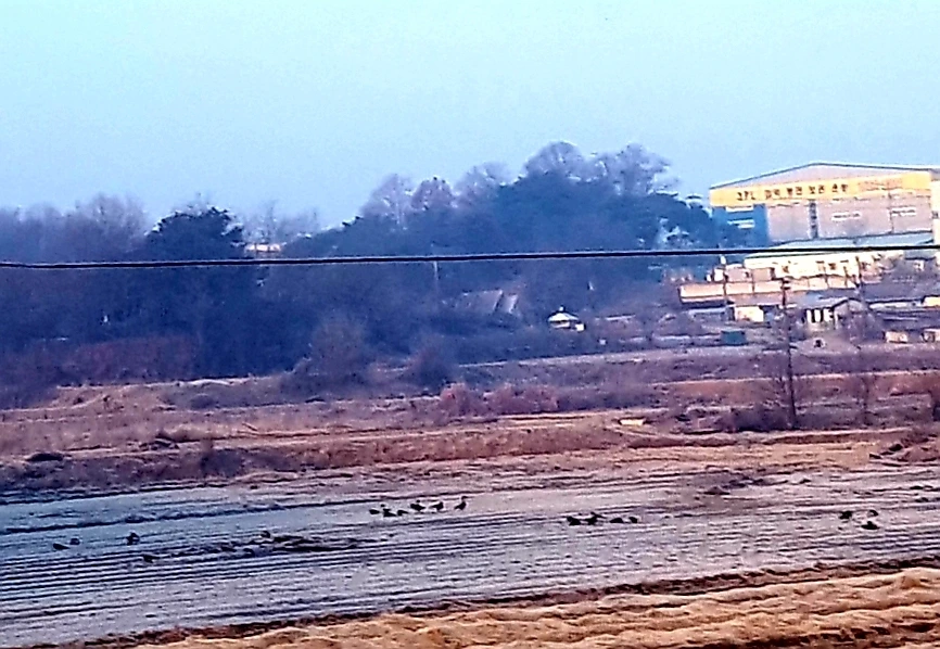 창밖을 보니 추수를 마친 눈 덮인 하얀 논이 펼쳐지는데 자세히 보니