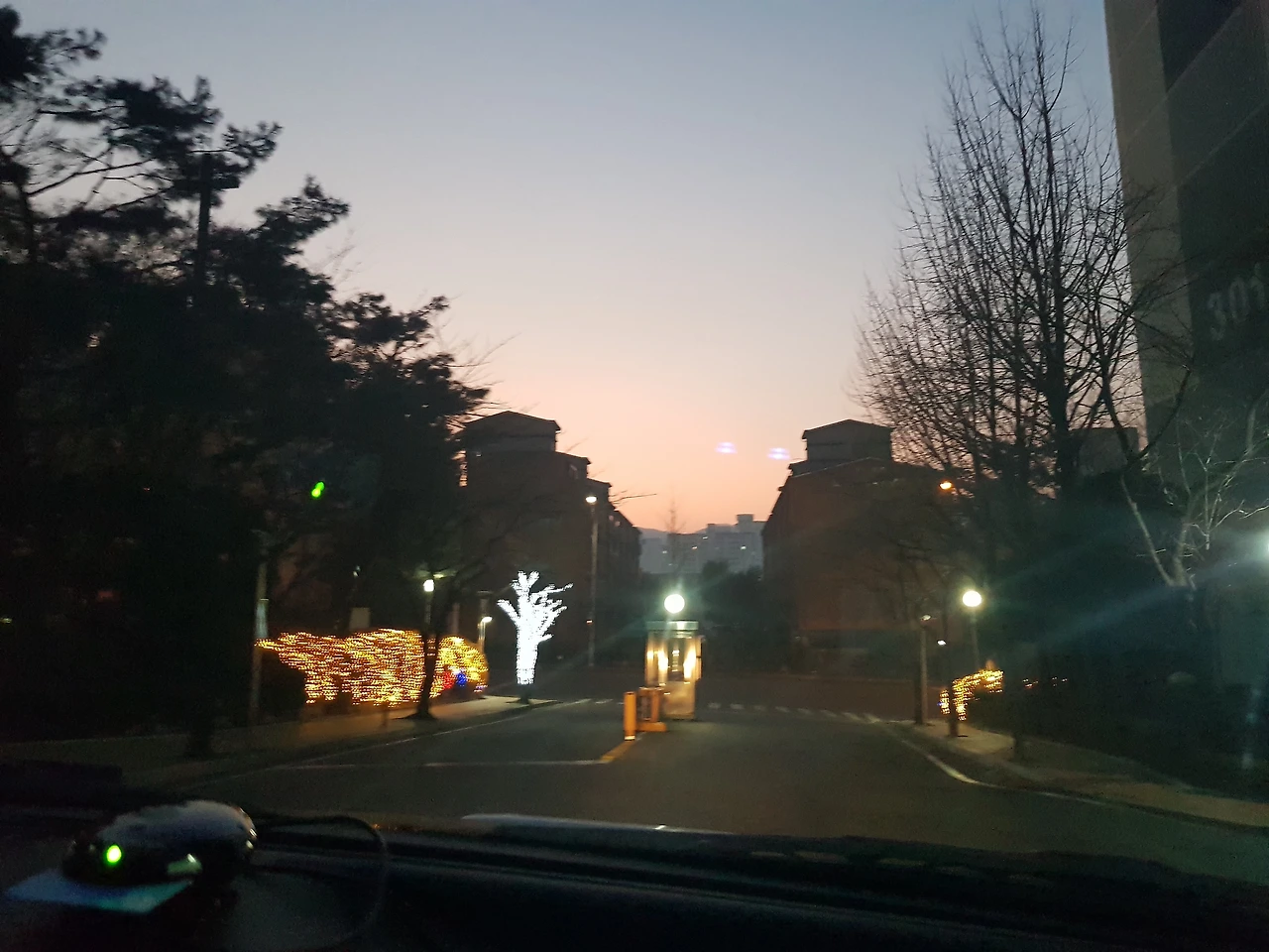 고속도로를 향해 나가는 길목이 아직은 해님 오시기 전이지만 삶의 길에 나선 차들이 가득한