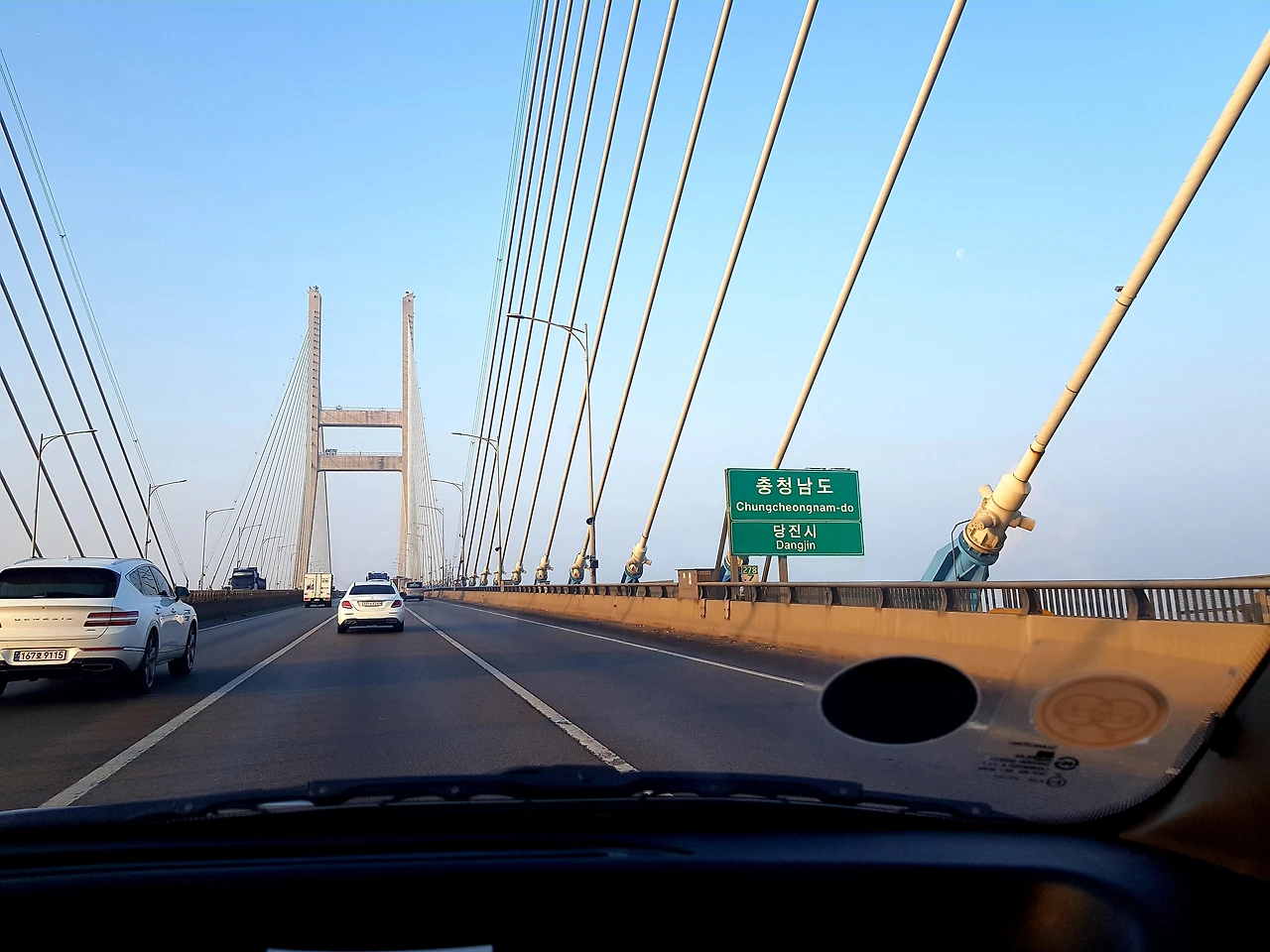 새들의 아침을 감상하며 가다 보니 어느 사이 우람한 서해 대교다