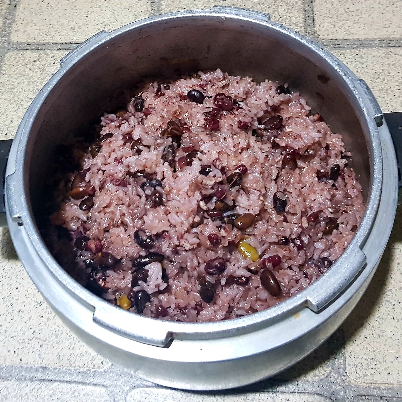 어머니는 오곡밥을 시루에 찌셨는데 나는 압력밥솥에 쉽게 한다