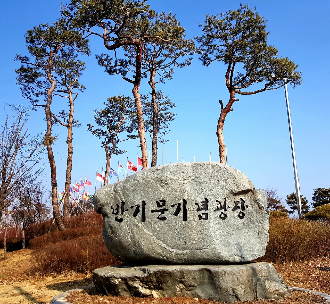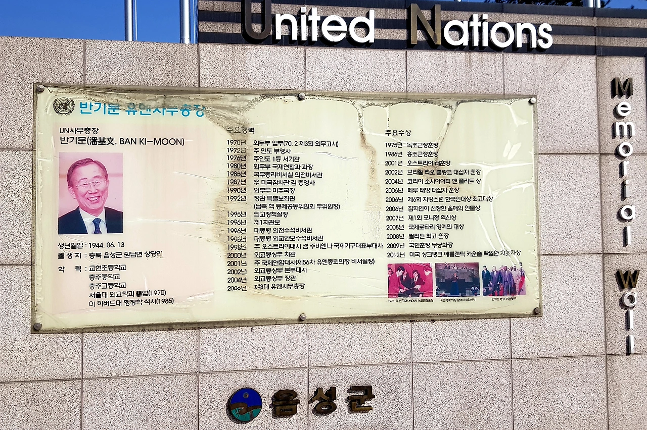 ㅡUN 반기문 기념광장ㅡ이라는 UN마크와 사진을 새긴 표지석이
