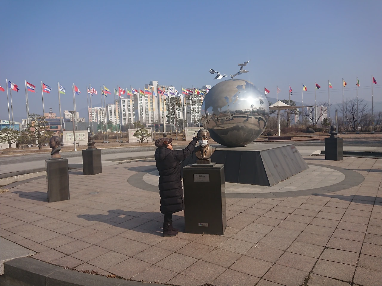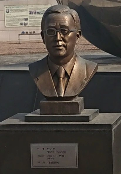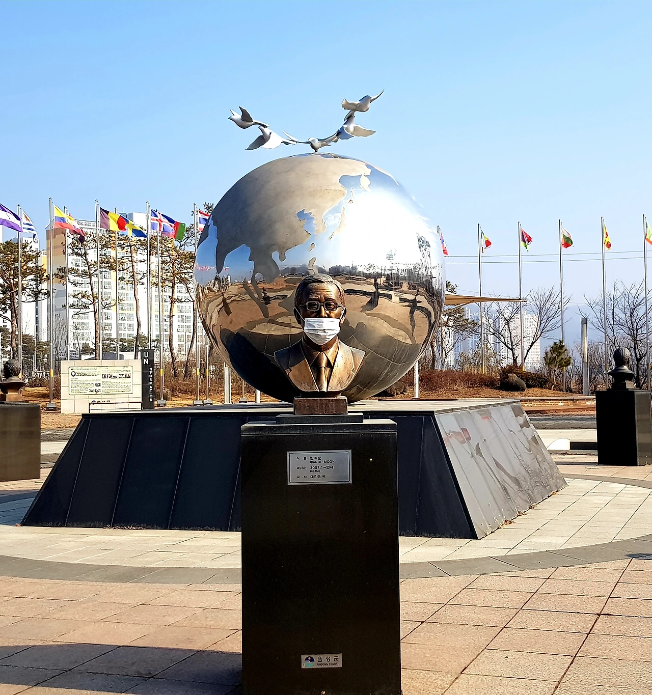 ? 그런데 코피아난 흉상에는 검은 마스크로 얼굴을 가려놓고 반기문 흉상에는 입에 하얀 마스크가 씌워있어 아직 코로나 시국임이 떠올랐다